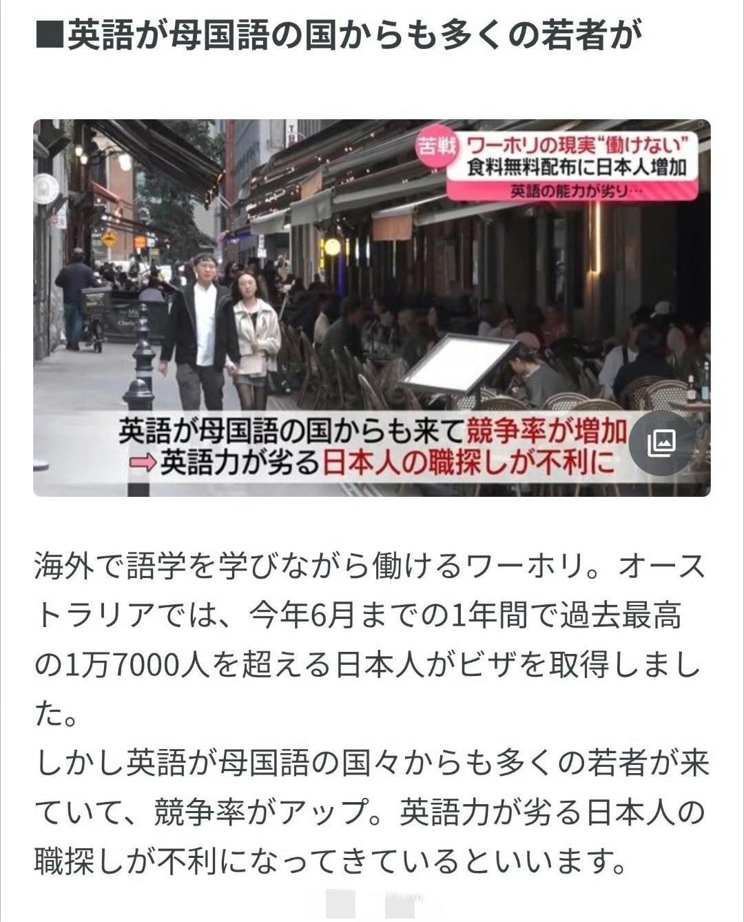 澳洲华人称“工资都被日本人卷下来了,现在很多地方华人去找工作要最低工资都很难,因为日本人给20澳元就拼命干”…日本国内到底发生了什么?此前有个新闻,澳大利亚给流浪汉的救济粮大多被日本青年领走了。日本收入 澳洲求职 日本打工人 内卷的本质原因是什么?