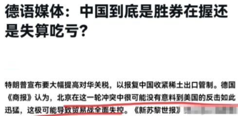 德媒声称,北京在这一轮冲突中很可能没有意料到美国的反击如此迅猛,这极可能导致贸易