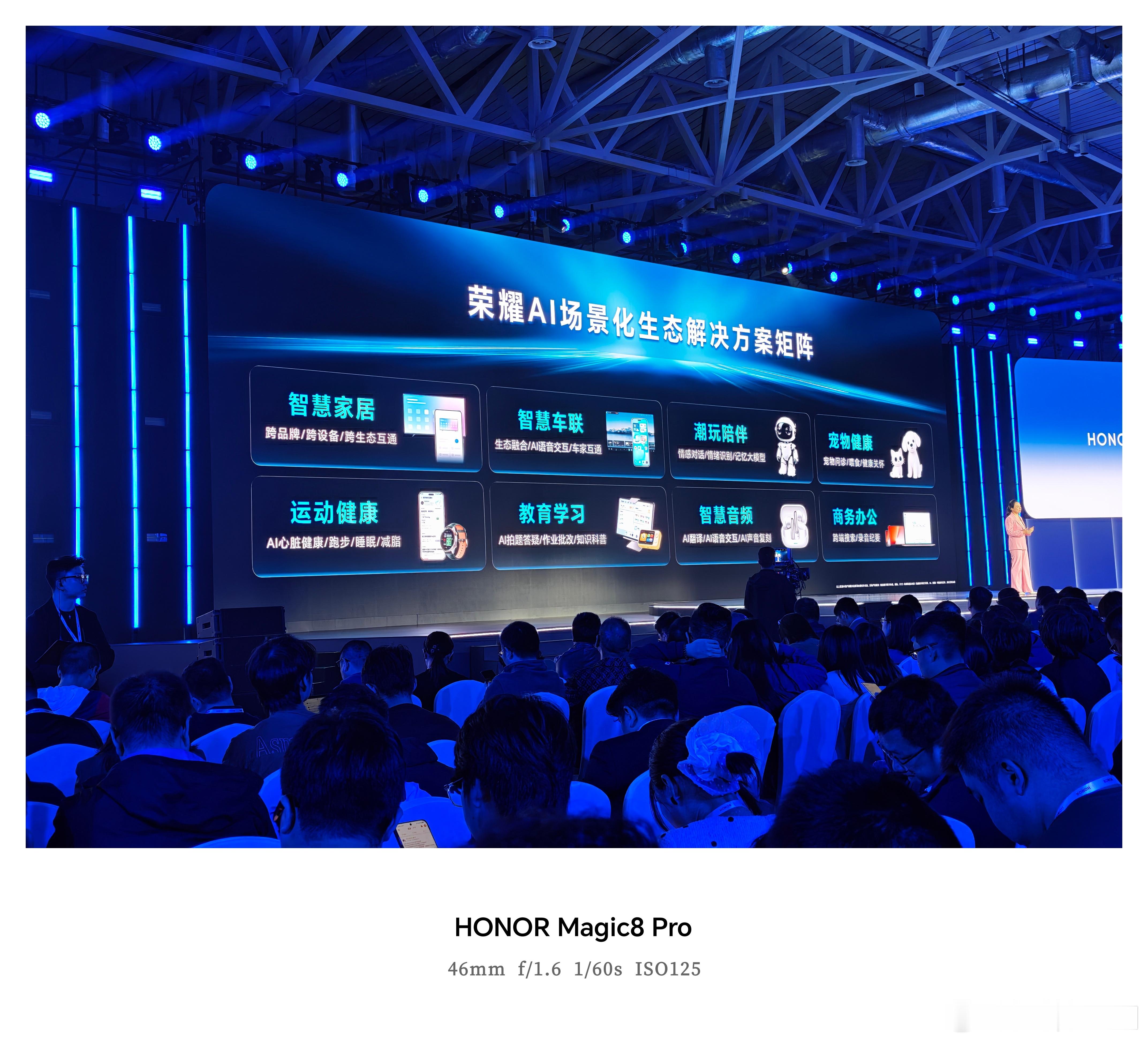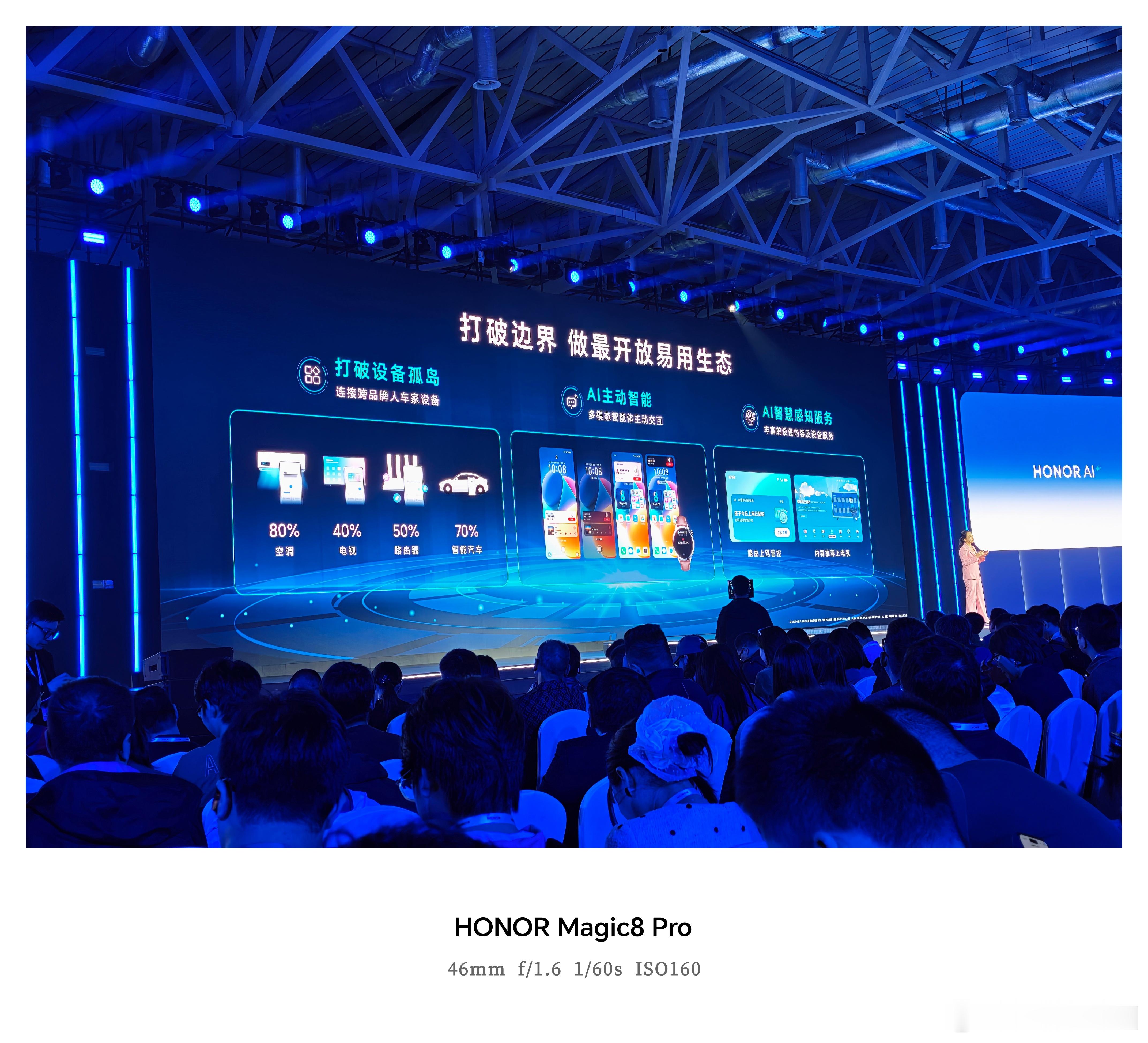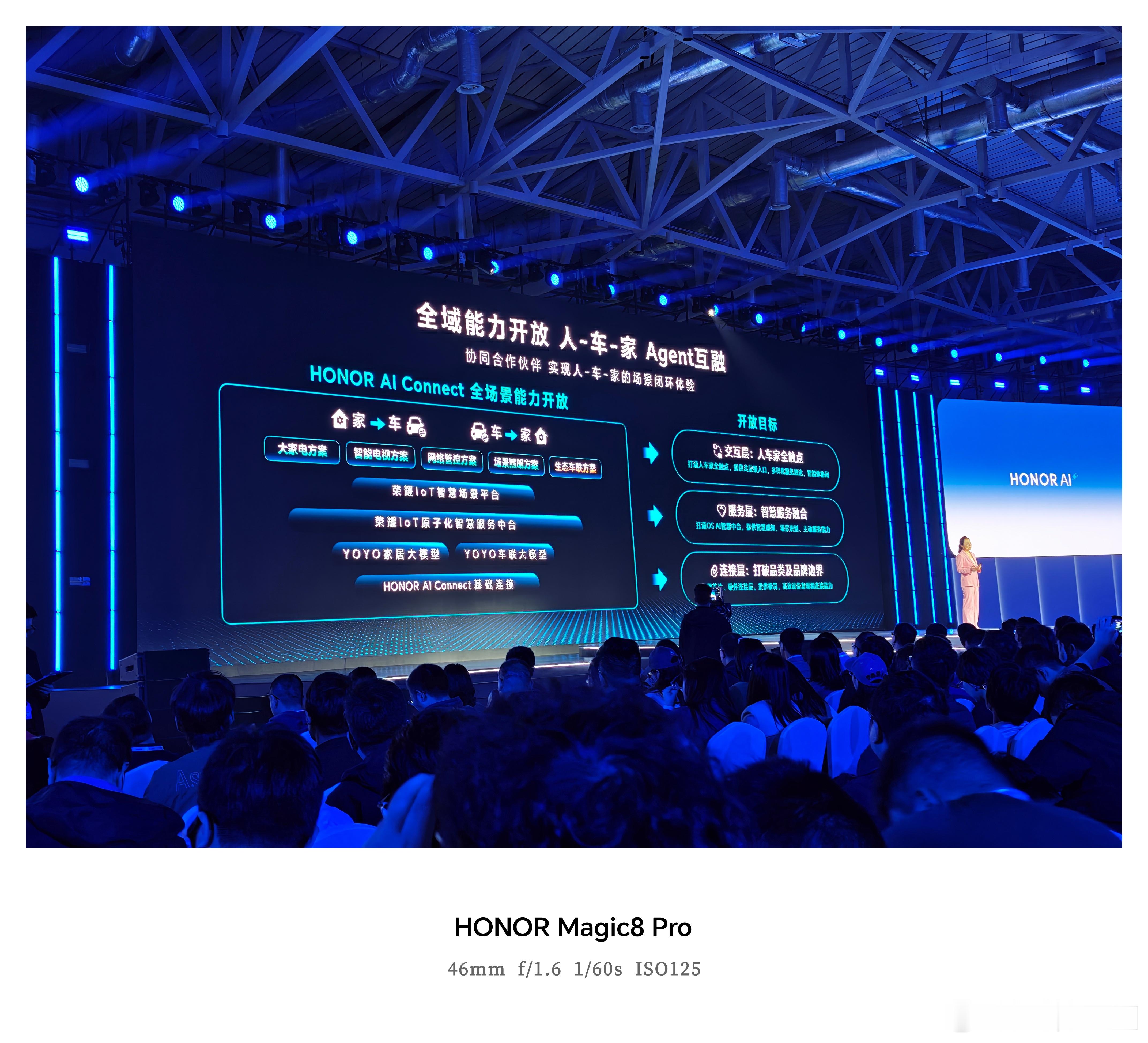 荣耀全球开发者大会2025 上,荣耀推出AI场景化生态解决的方案,打破边界,做开放易用生态。手机能自动感应家电自动连接控制,也提出了人车家的互融方案,荣耀手机当车钥匙也非常简单。