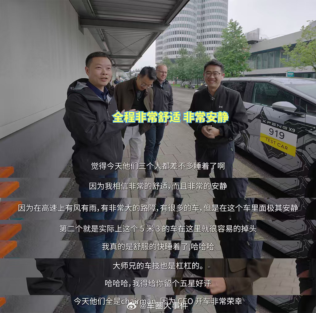 何小鹏带队全球路测新款X9 小鹏X9超级增程的全球路测正式开启,创始人何小鹏亲自带队参与,为这款旗舰车型的品质背书。路测中,小鹏X9超级增程的静谧性表现尤为突出,除了隔绝兰博基尼声浪,面对老城区碎石路的细微震动也能有效过滤;其5米3的车身在窄路中灵活穿梭,后轮转向的低速优势大幅凸显。
