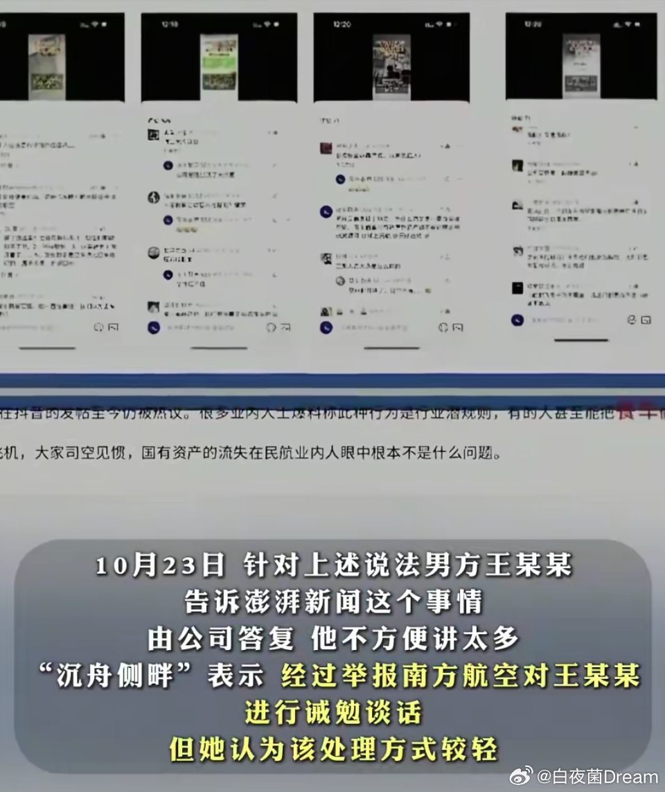 妻子PPT举报空警丈夫偷拿飞机物资堆放家中,丈夫被诫勉谈话,妻子认为该处理方式较轻。