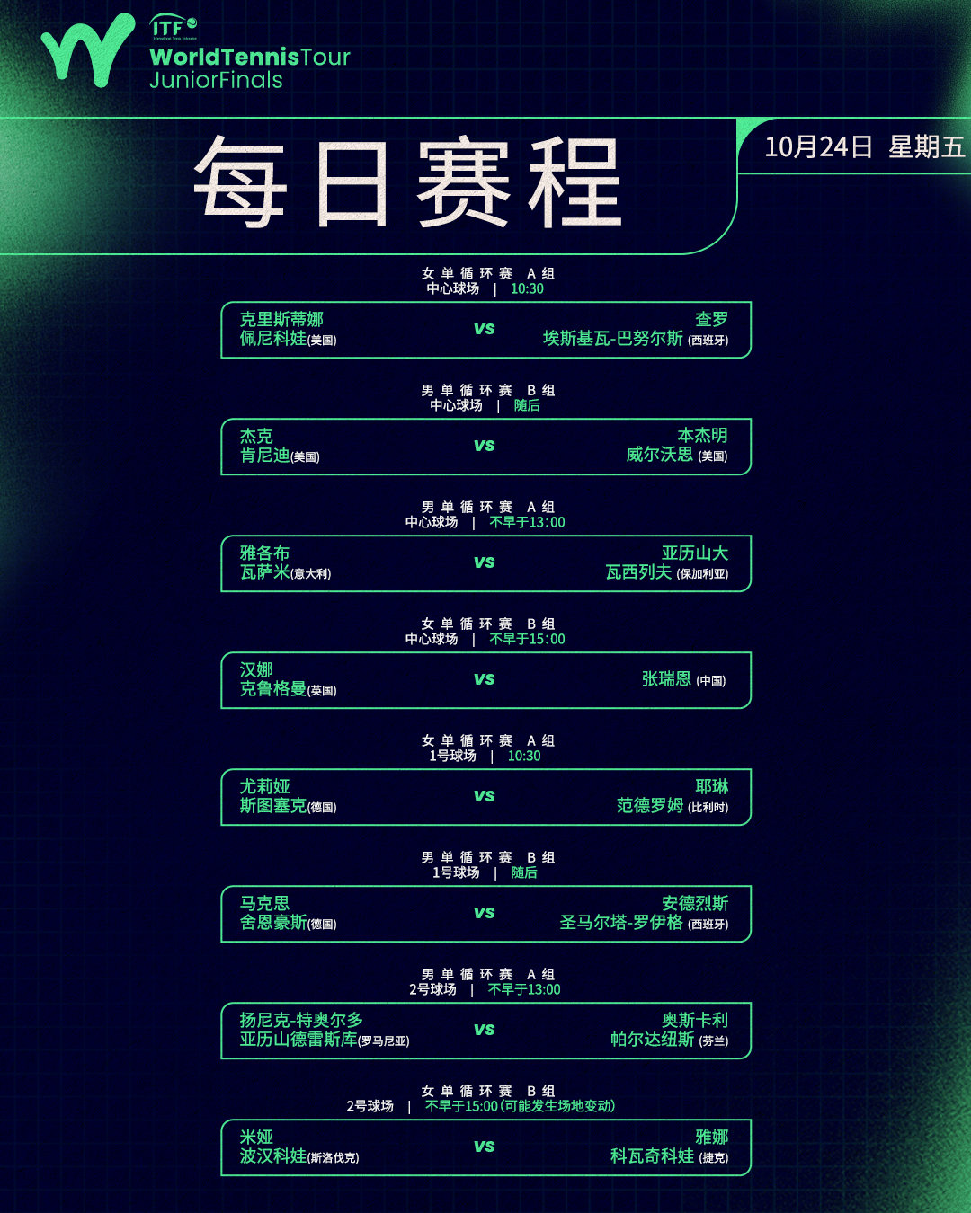 国际网联青少年年终总决赛 第三日赛程📅
