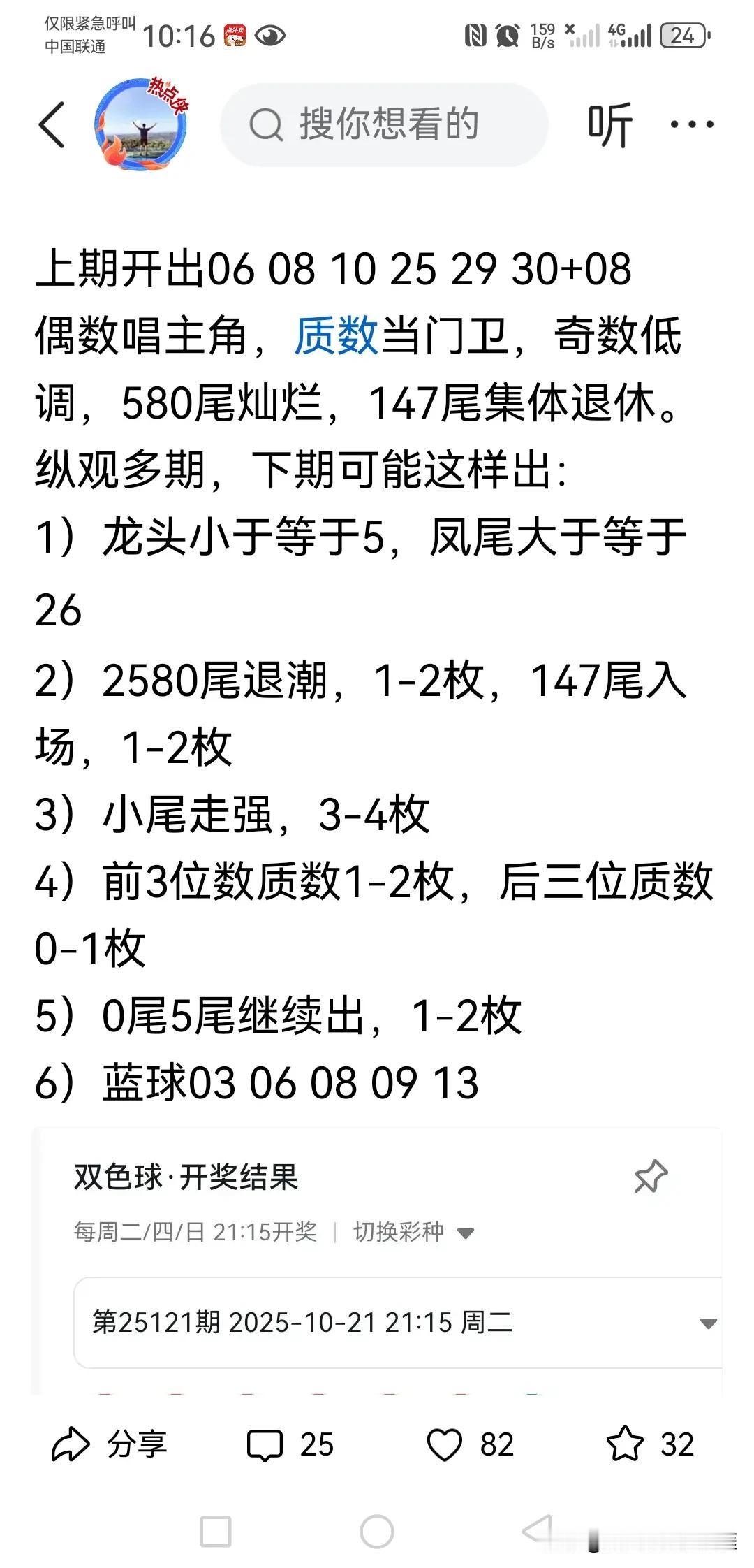 双色球122期开奖述评 本期开出16 18 19 20 25 31+13 与本人预测大部分一致,包括蓝球 本期可以说又是奇葩的一期,不仅断1区,还3连号,两记闷棍估计打得所有彩民晕头转向。其实者断1区我们上一期就有预感,没想到推迟了1期。 本期依然是大号和大尾主导,大多数人都认为3头要断,3头依旧不肯让位,看来从众真有风险! 预计下期1区有热闹可以看了。