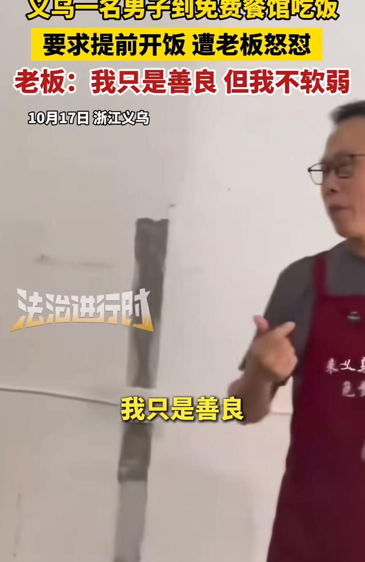 义乌,一名男子到免费餐馆吃饭,要求提前开饭,遭老板怒怼:“我只是善良,但不是软弱