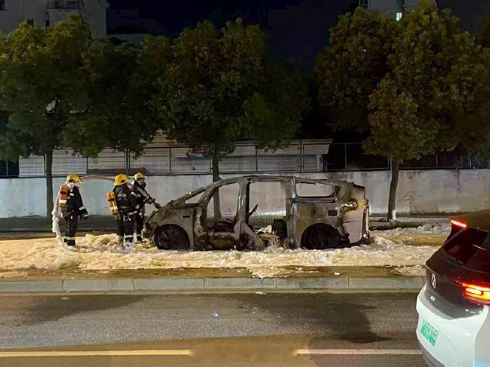 不幸中的万幸,从后车记录仪显示,车辆在无碰撞情况下底部突发爆炸,火势数十秒内蔓延,但驾乘人员得以迅速逃生。