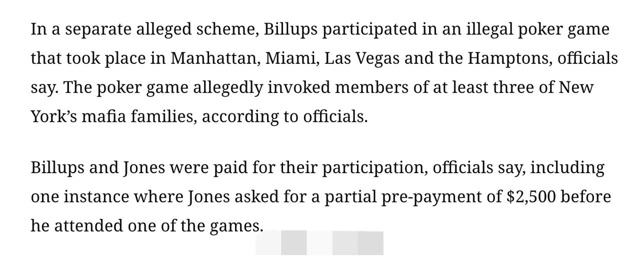 真相曝光,比卢普斯涉嫌非法赌博,不是赌球。不洁身自好,神仙也救不了。教练的饭碗砸了,NBA的职业今生将就此画上句号。在美国赌博是不合法的,除了在有些州的赌场,譬如拉斯维加斯。他是因为FBI调查达蒙琼斯、罗齐尔的赌球案子,被意外查到的,参与非法赌博还有纽约的黑手党成员。显然,比卢普斯赌博不是一时兴起,而是有瘾。在NBA职业生涯赚了上亿美金,应该不差钱。查普斯 泰普斯 塞普斯