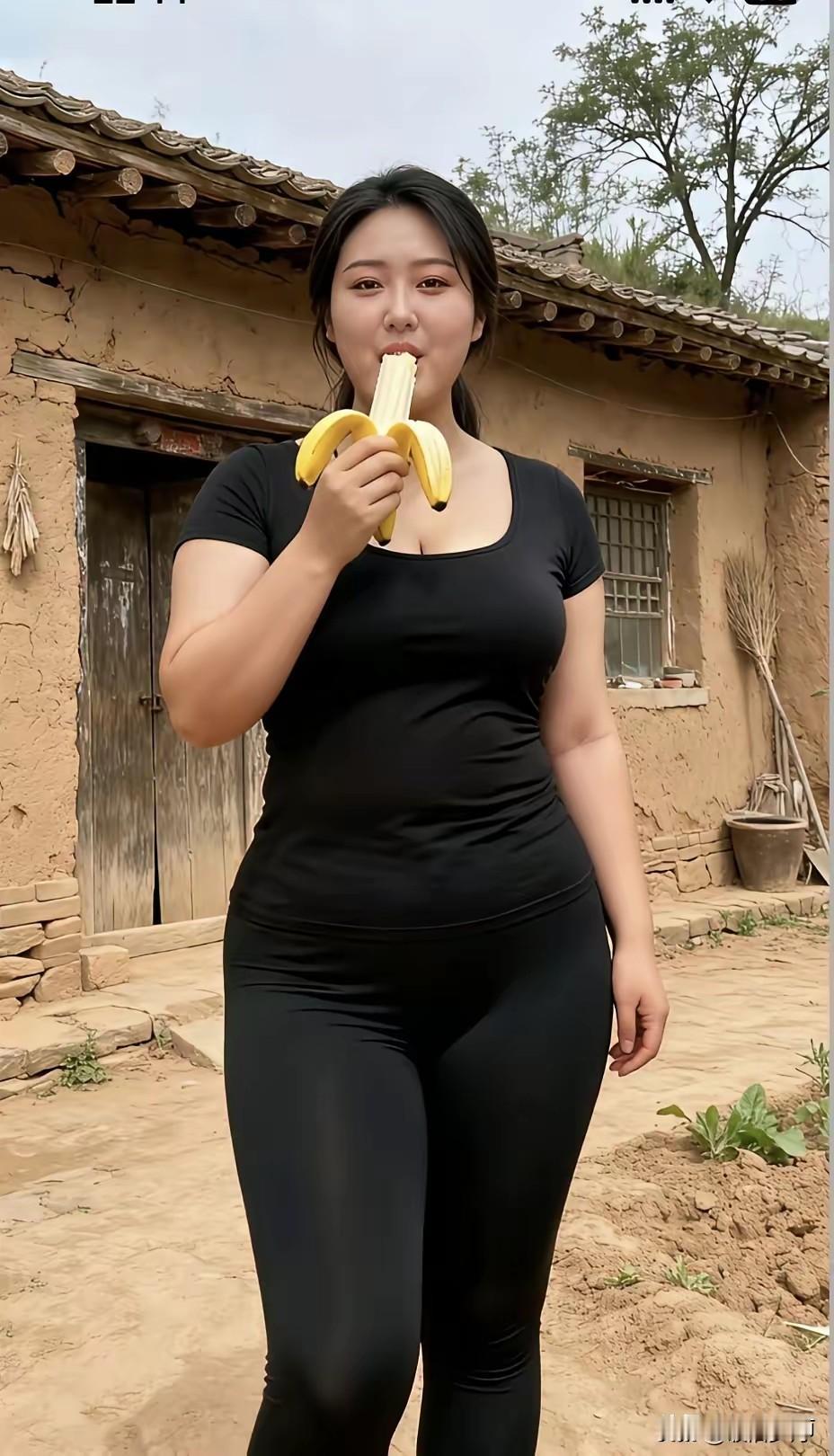 乡村生活,简单快乐,吃一根香蕉,享受自然。