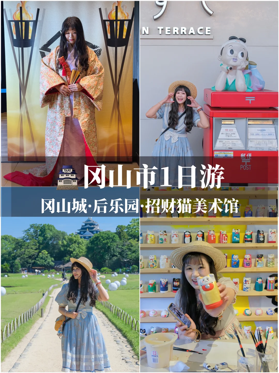 冈山城 → 冈山后乐园 →Hal u Lala→JR冈山站 → 招财猫美术馆,慢旅行也能很充实✨