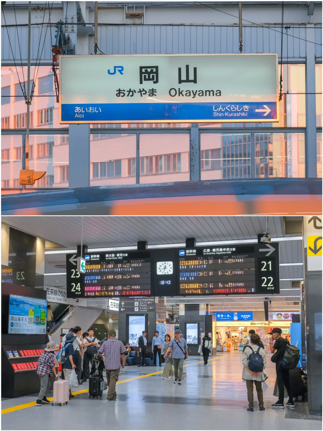 回到JR冈山站🚉,车站本身就是打卡点,柯南里也多次出现过。这里不仅是交通枢纽,还集齐了美食、购物和土特产店,可以补充能量顺便买伴手礼。