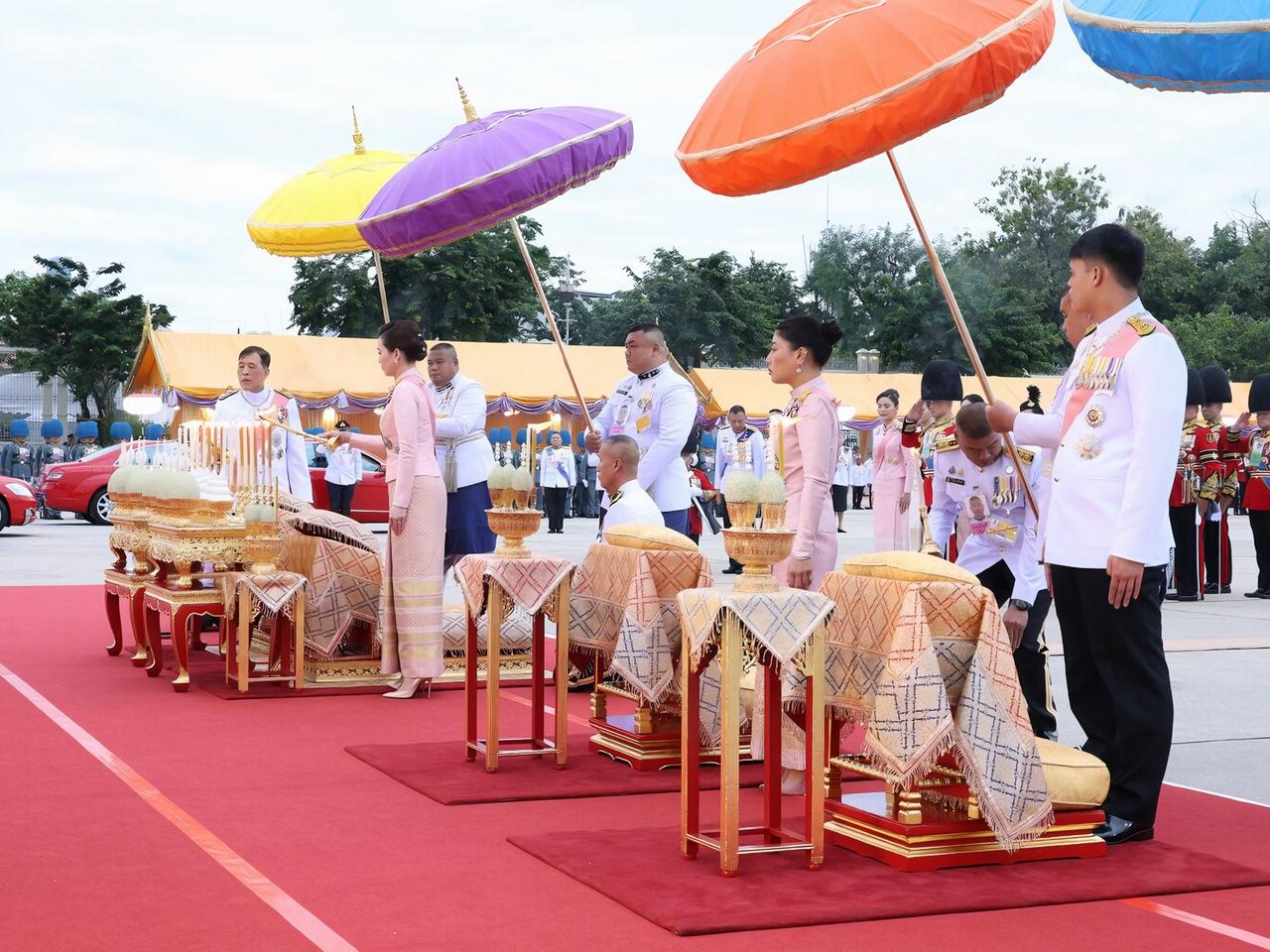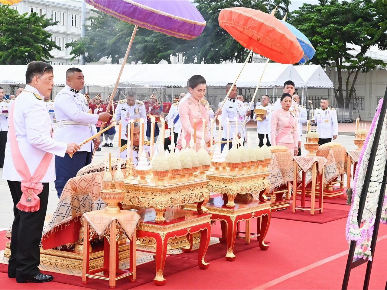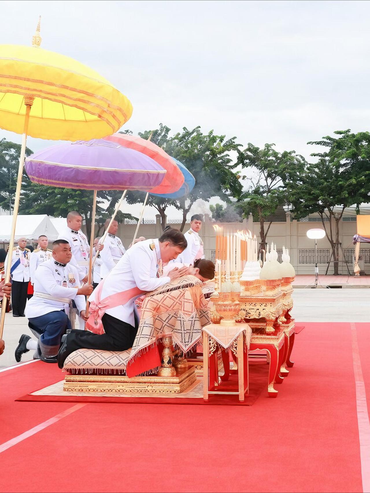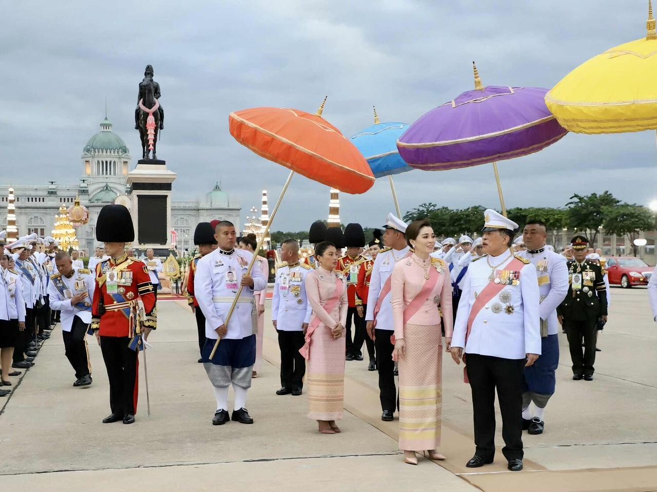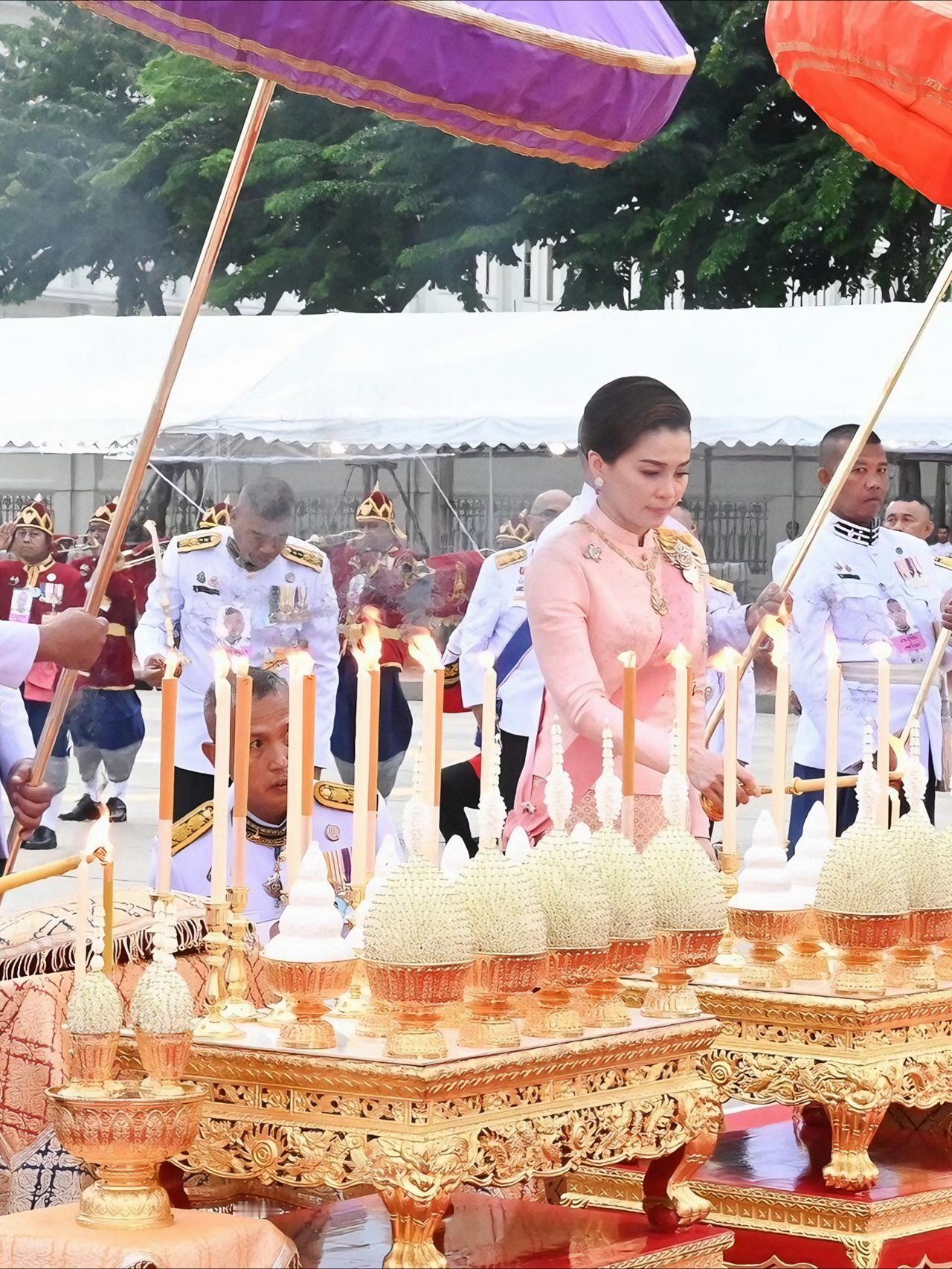 苏提达最新造型好美,樱花礼服仙气飘飘 2025年10月23日下午5点21分,国王和王后,乘皇家专车去杜斯特宫,朱拉隆功国王纪念碑敬献花圈,思蕊梵公主与提帮功王子也一同出席。众人抵达后,敬献个人花圈、点燃香烛,并摆上少量供品以表敬意。之后,他们又登上皇家专车,前往大皇宫阿玛琳·威尼猜王座大厅,参加朱拉隆功节皇家功德仪式。