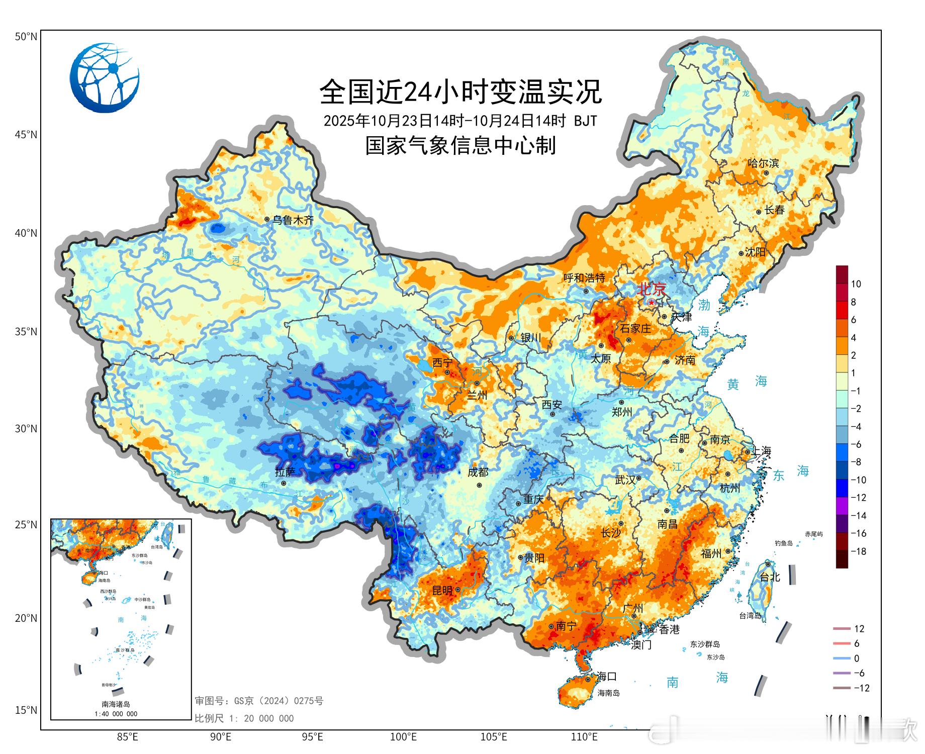 【气温东升西降】今天因为阴雨(雪)遮挡了光照加热,西藏、青海、云南西北部、四川、重庆湖北河南等地出现降温。西藏比如降10.9℃、那曲降10.3℃、青海玉树降10.1℃,为14时全国降温前三站点。相反,今天中东部大多晴朗升温,山西平鲁升7.7℃,为14时全过升温最强站点。
