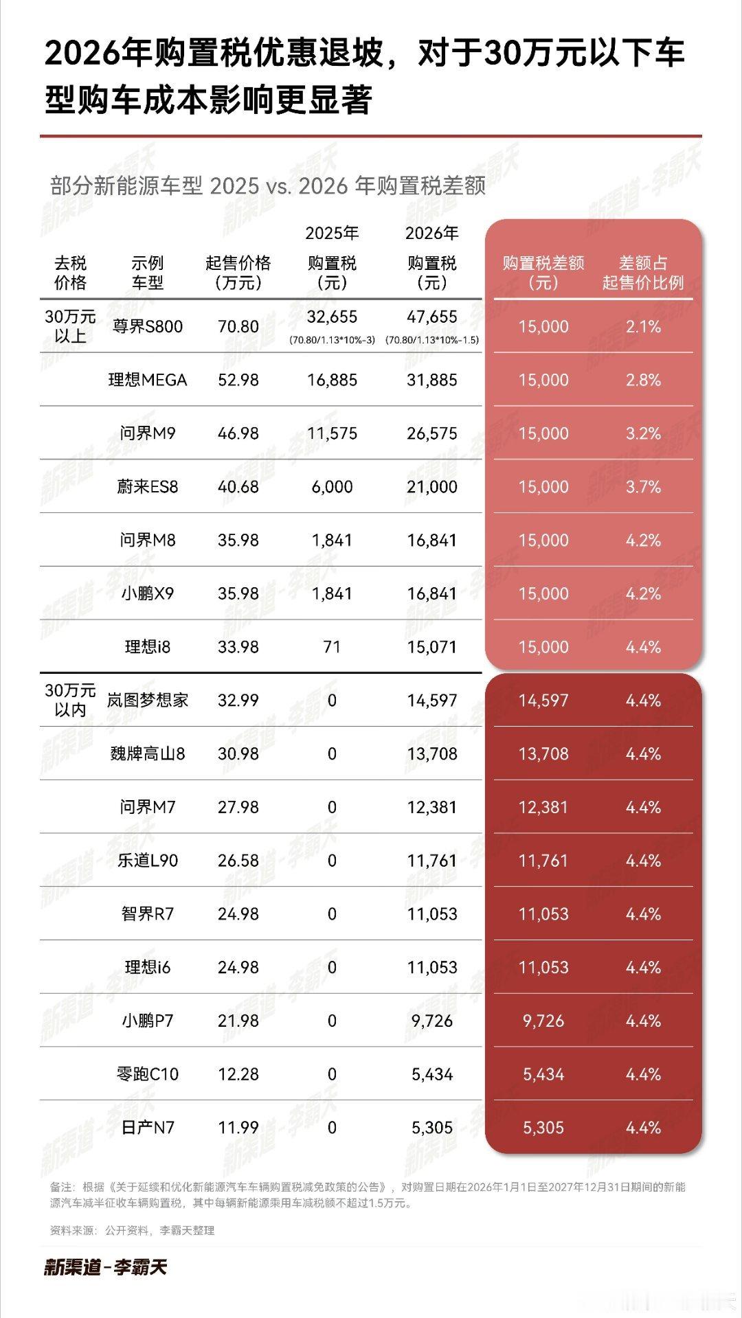 这意味着,如果一辆车在2026年开票,购车者可能需要多支付1.5万元的购置税。