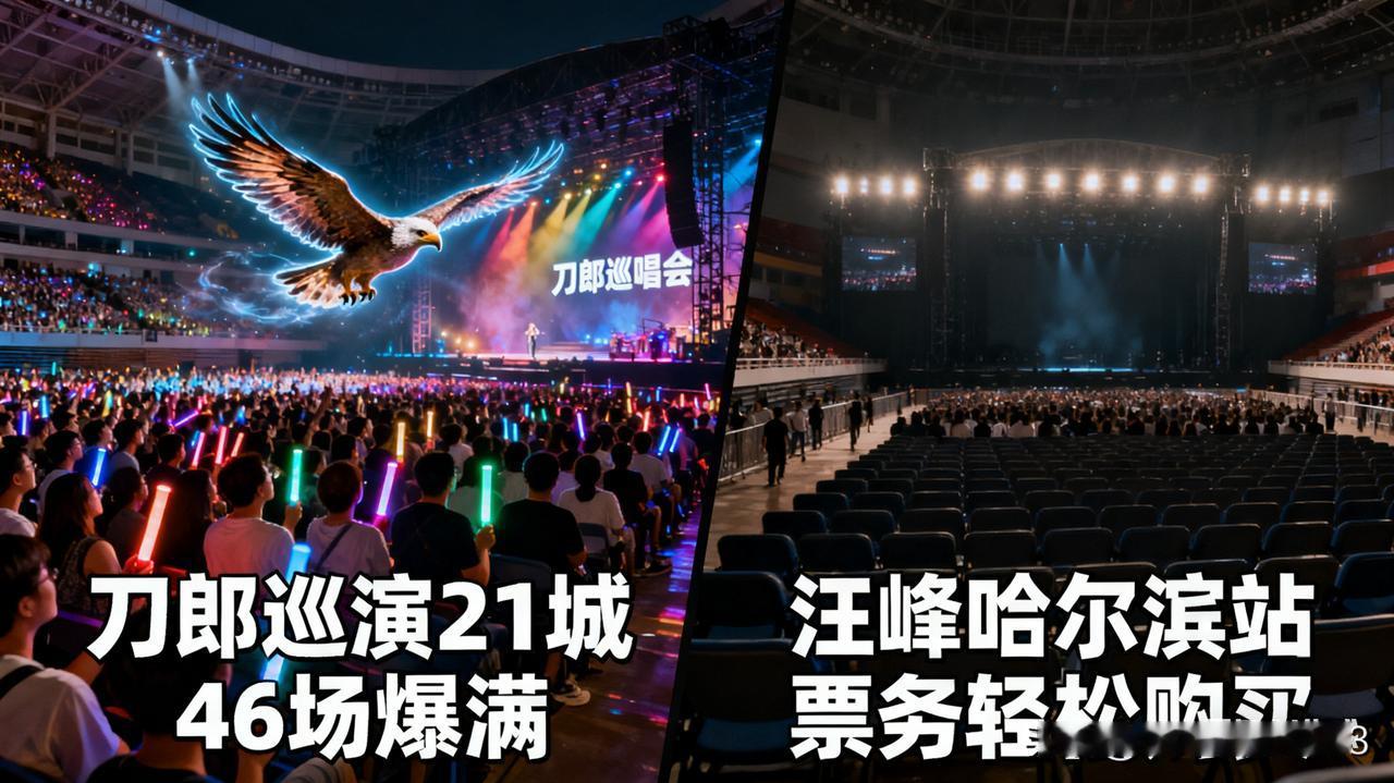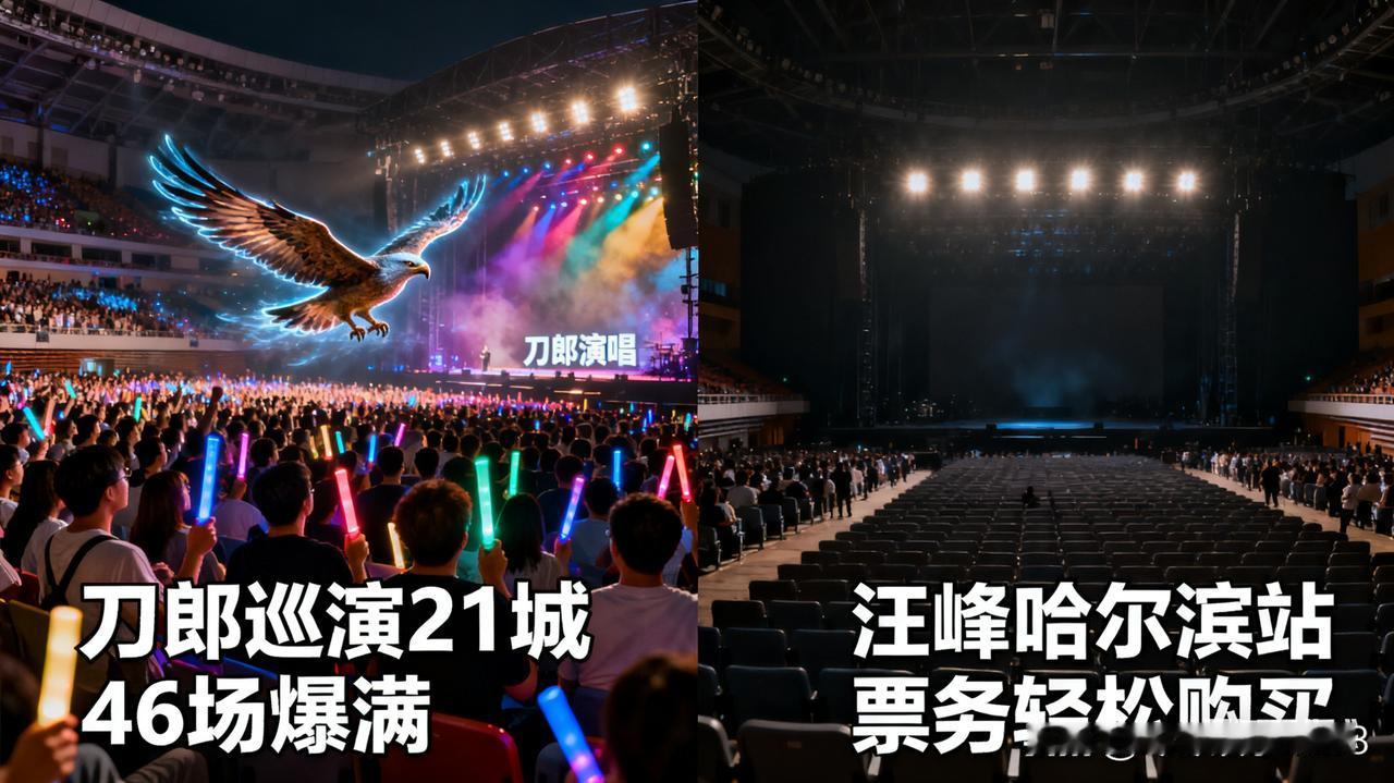 音乐圈风云变幻,刀郎和汪峰的演唱会情况形成了鲜明对比。刀郎可谓是 “王者归来”,他在 2004 年凭借《2002 年的第一场雪》火遍大江南北,之后沉寂多年,如今带着专辑《山歌寥哉》强势回归。他的北京二手票价格高涨,临沂站更是一票难求,现场火爆异常。刀郎的音乐风格独特,有着沙哑沧桑的嗓音,旋律简单流畅,歌词叙事性强,充满质朴情感,深受大众喜爱。 而汪峰曾经也是热度极高的歌手,但如今他哈尔滨站的票却很好买,票房转化不太理想。汪峰的音乐风格更偏向摇滚,情感表达较为强烈。 由此可见,音乐圈没有永远的赢家。谁能让观众心甘情愿地买票,谁就能在这个圈子站稳脚跟。未来刀郎和汪峰谁能更胜一筹,还真不好说。