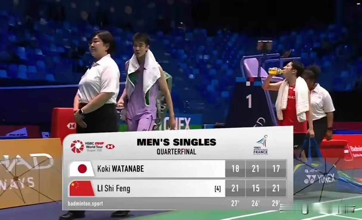 法国羽毛球公开赛最后一场男单1/4决赛,李诗沣经过82分钟激战,以21:18、15:21、21:17击败日本球员渡边航贵,晋级半决赛,将与2-1战胜了队友安赛龙的安东森争夺决赛席位,另一场半决赛将是昆拉武特对阵东道主宠儿小波波夫,两人分别淘汰了印尼小将法汉和中国台北球员戚又仁。
