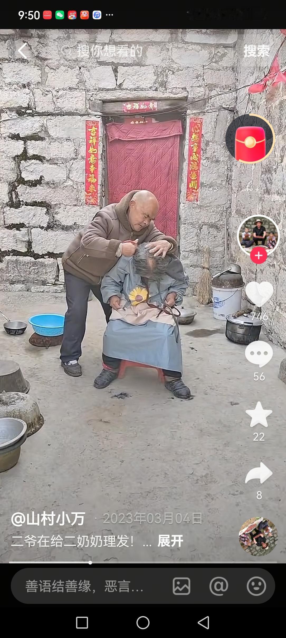 重温了一遍山村小万的视频,发现山里的人生活真的不容易! 小万的二爷二奶奶从来没有去过理发店,老两口都是拿剪刀你给我理理发,我给你剪剪头。 反正剪成什么样子,谁也不会嘲笑谁 ,不花钱才是硬道理!再说,老一辈的山里人,也没有那个闲钱去理发店理发。 二爷每次下山跳水,来回都要走四十多分钟的山路。 跟拍在后面的小万,只是拿个手机都累的气喘吁吁。但走惯山路的二爷,担着两桶水却是脸不红,气不喘,走的稳稳当当,愣是一滴水都没有洒落在半道上! 现在小万的二爷,二奶奶都不在了,山里的村庄也安上水管,解决了人们用水难的问题。只是不知道还有没有年轻人,愿意在这里长期居住了!