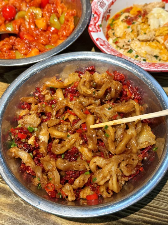 果然长沙真正好吃的都藏在老居民楼里!! 多亏了本地人带路,近期反反复复吃了不下20次。。虽然没什么环境但是味道绝了!!阳光苹果虾、醋炒蛋、肖歌新派牛腩、干煸鸭掌筋……只要不倒闭我会一直点下去的!(叫:肖歌口味菜