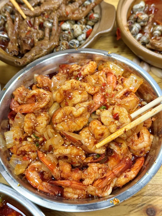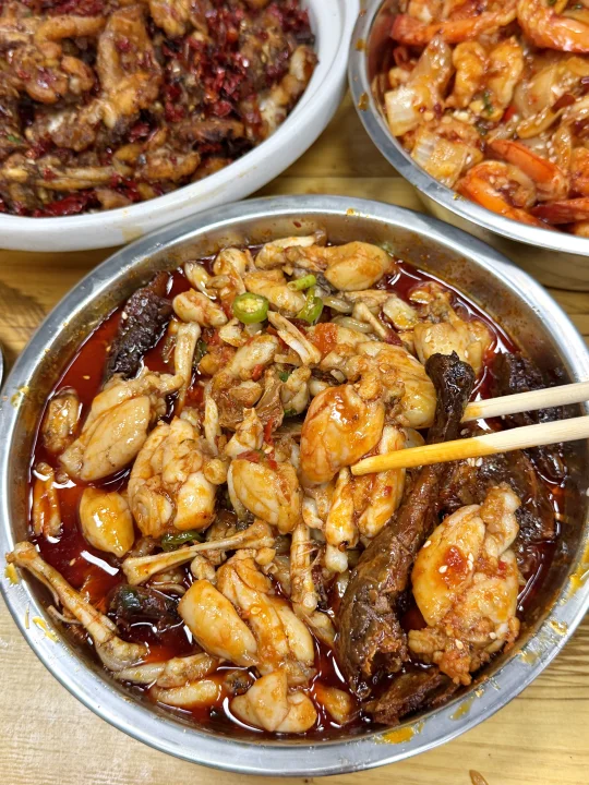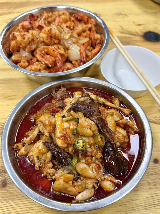 真的名不虚传!!值得我坐15站地铁来 就在省博附近,不是本地人都找不到的苍蝇馆子。没啥环境,口味却比预制菜强太多了🥹🥹酱板鸭牛蛙肉好大坨好入味!还有干煸章鱼罗氏虾!吃完是立刻想要再加一份的冲动!下次一定会带朋友来n刷(叫:罗霸蛮大排档