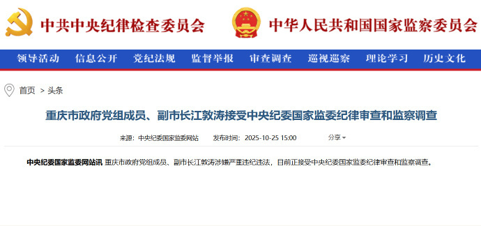 【周末打虎!#重庆市副市长江敦涛任上被查#】重庆市政府党组成员、副市长江敦涛涉嫌严重违纪违法,目前正接受中央纪委国家监委纪律审查和监察调查。(中央纪委国家监委网站)