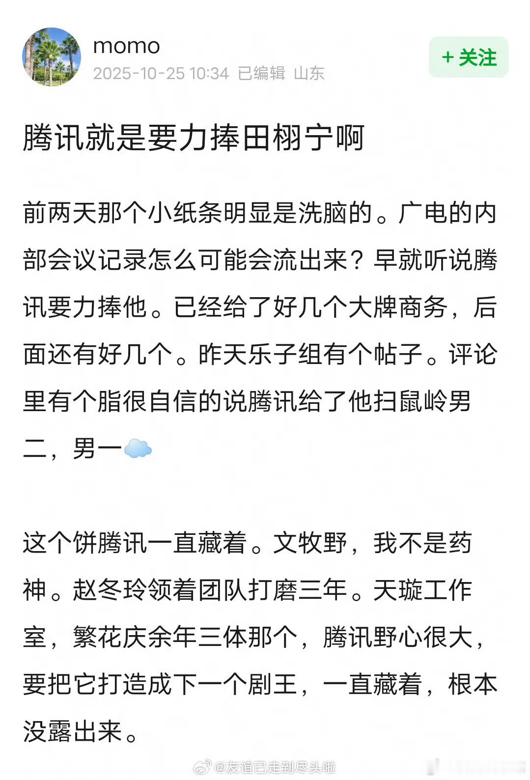 腾讯或将力捧田栩宁编饼都没敢编短期内能开机的[允悲]