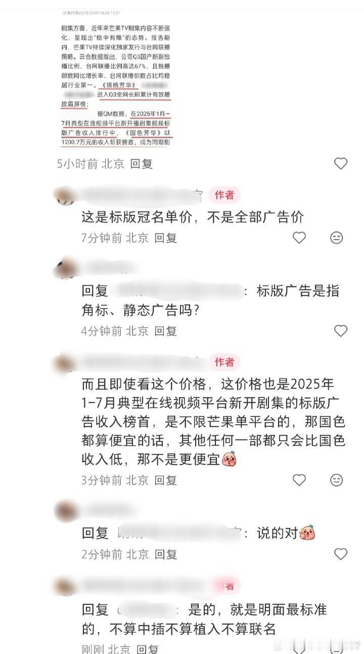 国色芳华那张截图是仅角标广告的价格,非全部剧集广告收入,我早上看错了,有错就认,sorry杨紫。