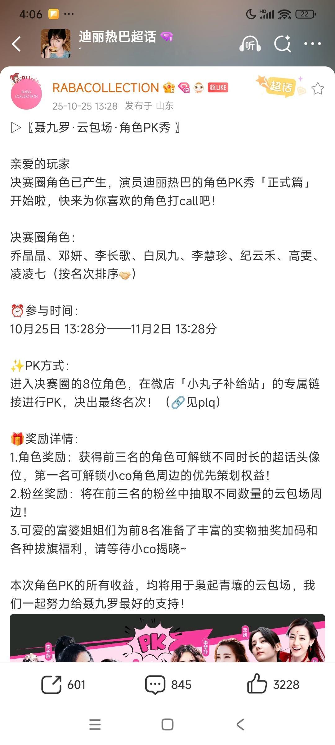 迪丽热巴家真的好有意思啊,为了给即将上映的聂九罗,做好宣发和云包场,88粉圈搞了一个角色争霸战,就是不同的角色粉之间进行pk,看哪个角色阵营的力量更大云包场更多,目前晶晶女神暂居第一。