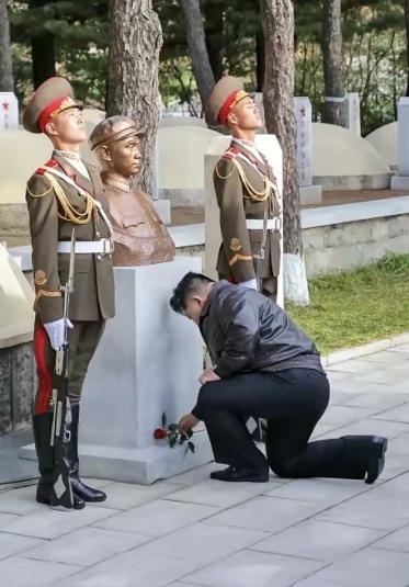 这就是虔诚,金大帅单膝跪地纪念志愿军入朝作战75周年,此墓乃毛岸英烈士之冢。 朝鲜是目前唯一我国的军事盟友,没有第二。 岸英太年轻了,太可惜了,还未来的及绽放,就已凋落,每次看到岸英牺牲,真让人痛心啊!我们伟大人民的好儿子。 这一跪,是对那些浴血奋战抗美援朝的伟大战士的崇高敬意!感动!激动!烈士的鲜血没有白流,浇灌的中朝友谊之树,万古长青! 无论朝鲜今后如何,但是朝鲜半岛北部,绝对不能落入美韩之手,卧榻之旁岂容他人酣睡?这是我们的安全屏障!