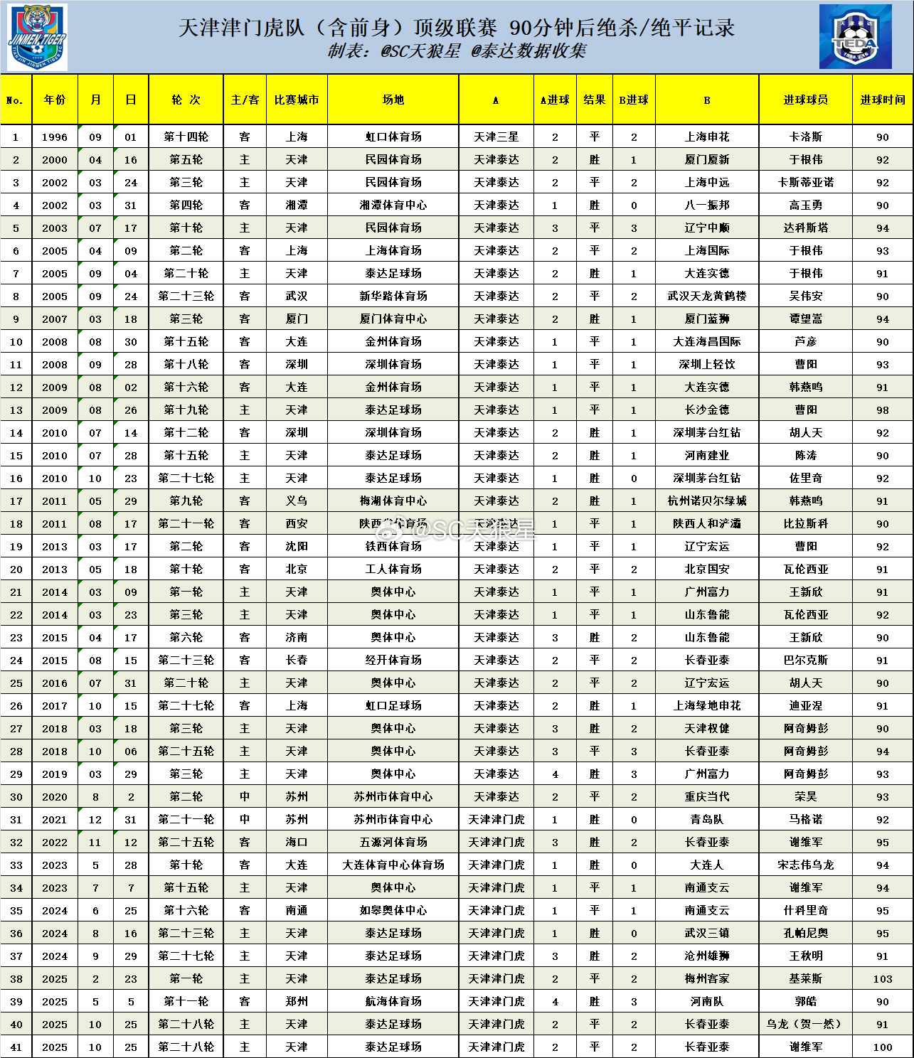 7. 谢维军的进球在第100分钟攻入,这是职业化以来,球队在正式比赛中第二晚进球,(第一晚进球是联赛首轮,基莱斯绝平)(图6)