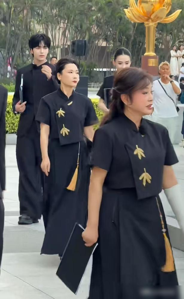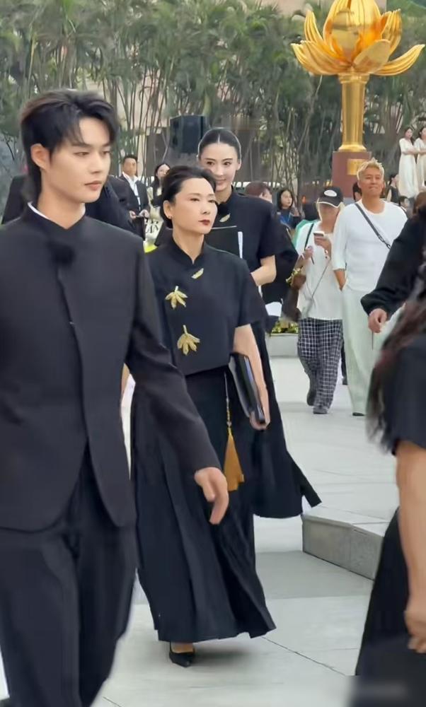 看来微笑和严肃的确看着感观不一样,看刘晓庆表情就很舒服很自然,再看何赛飞绷着脸就看着不咋舒服,尤其穿这身衣服。 这次节目组的造型是下了血本还是彻底摆烂?全员黑西装确实显气场,但穿不好就容易像保险团队开早会。刘晓庆那个状态是真的好,笑起来眼角有细纹但特别生动,一看就是心情放松。何赛飞老师被说绷着脸确实有点冤,她那个嘴角天生就有点向下,不笑的时候就是有种淡淡的忧郁感,跟不高兴是两码事。 有网友翻出她早年演《大红灯笼高高挂》的剧照,那种哀怨美人的气质就是从那时候定型的。现在六十多了还能保持这种独特韵味,其实挺难得的。倒是节目组安排统一服装有点欠考虑,黑压压一片把每个人的个性都吞没了。要不是胸前那点金色装饰,整个画面得沉闷得像追悼会现场。 看看隔壁综艺《花儿与少年》的配色,哪怕也是深色系都会用亮色丝巾或胸针提气。芒果台的造型师确实更懂怎么让明星在统一中展现个性。这次央视的审美有点过于强调庄重,反而丢了鲜活感。 不过话说回来,何赛飞这套要是单独穿去颁奖礼其实挺显气质,深V设计加上缎面材质很显贵气。问题就出在集体亮相时,所有女明星穿得一模一样,观众自然会更聚焦在表情管理上。这时候笑得不够灿烂的那个就容易吃亏。 其实仔细看流出的现场视频,何赛飞和其他人互动时经常有抿嘴笑的小表情,只是镜头扫到全景时恰好没捕捉到。现在网友看东西都是碎片化的,截个动图就能给人定性格。以前电视时代还能看完整节目,现在全是短视频切片判断是非。 刘晓庆确实更懂得应对镜头,不管什么时候被抓拍都是标准微笑。这是几十年演艺生涯练出来的本事,当年演武则天的时候就被导演夸过"镜头感天生好"。但要求所有老艺术家都变成表情管理大师也不现实,像焦晃老师上台永远板着脸,照样是受人尊敬的老戏骨。 节目组下次真该长点心,要么在服装设计上留点发挥空间,要么多剪点嘉宾互动的温馨花絮。现在这样让老实人吃亏,让会笑的占便宜,反而显得节目内容单薄。毕竟《一路繁花》主打的是文化传承,不是微笑比赛冠军评选。 说到底还是观众太苛刻了。年轻演员表情丰富被说戏多,老演员表情严肃被说甩脸子。其实只要业务能力过硬,私下性格如何真没必要放大镜观察。何赛飞去年在《霸王别姬》重演时指导年轻演员的片段网上还能搜到,那专业态度比假笑珍贵多了。 看看人家吴彦姝奶奶,八十多了拍照也经常不笑,但每个皱纹里都是故事感。观众现在最该修炼的,或许是学会欣赏不同质地的美。