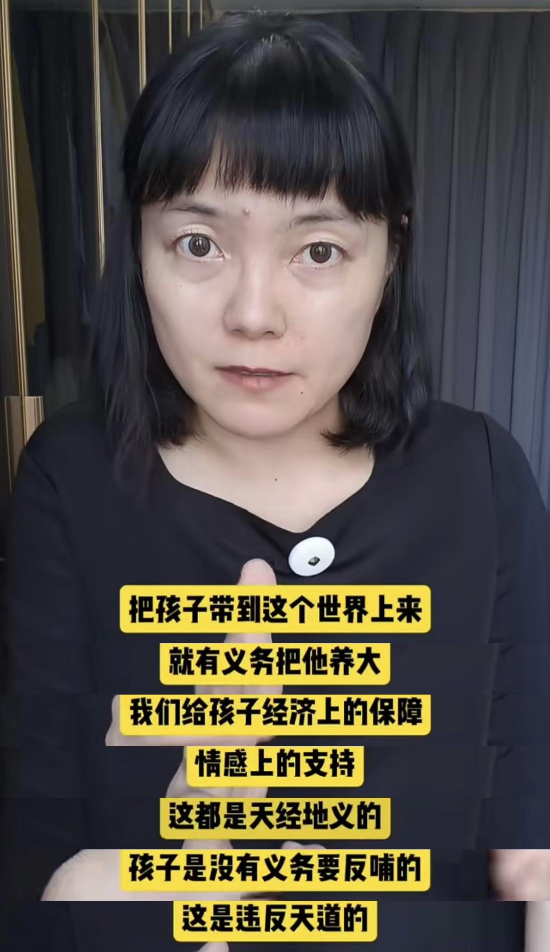 父母把孩子带到这个世界上,就有义务供吃供喝给她(他)支持,这是天经地义,但让孩子反哺父母孝顺父母,就是违反天道…… 这些话源自这位“关注女性成长”的心理咨询师,不能说是震碎三观,只能说老祖宗那点仁义礼智信是忘的一干二净,这是要从文化根基上制造矛盾,不知道这位女士对她的孩子是不是也这么教育。