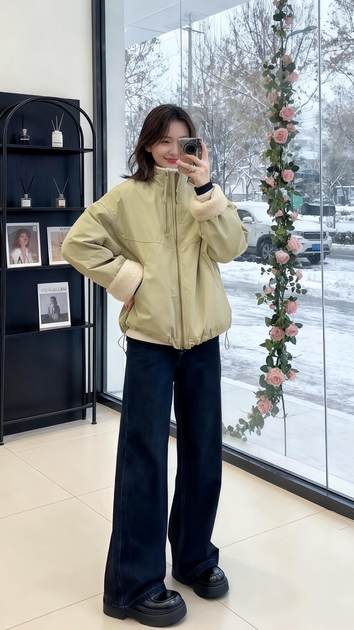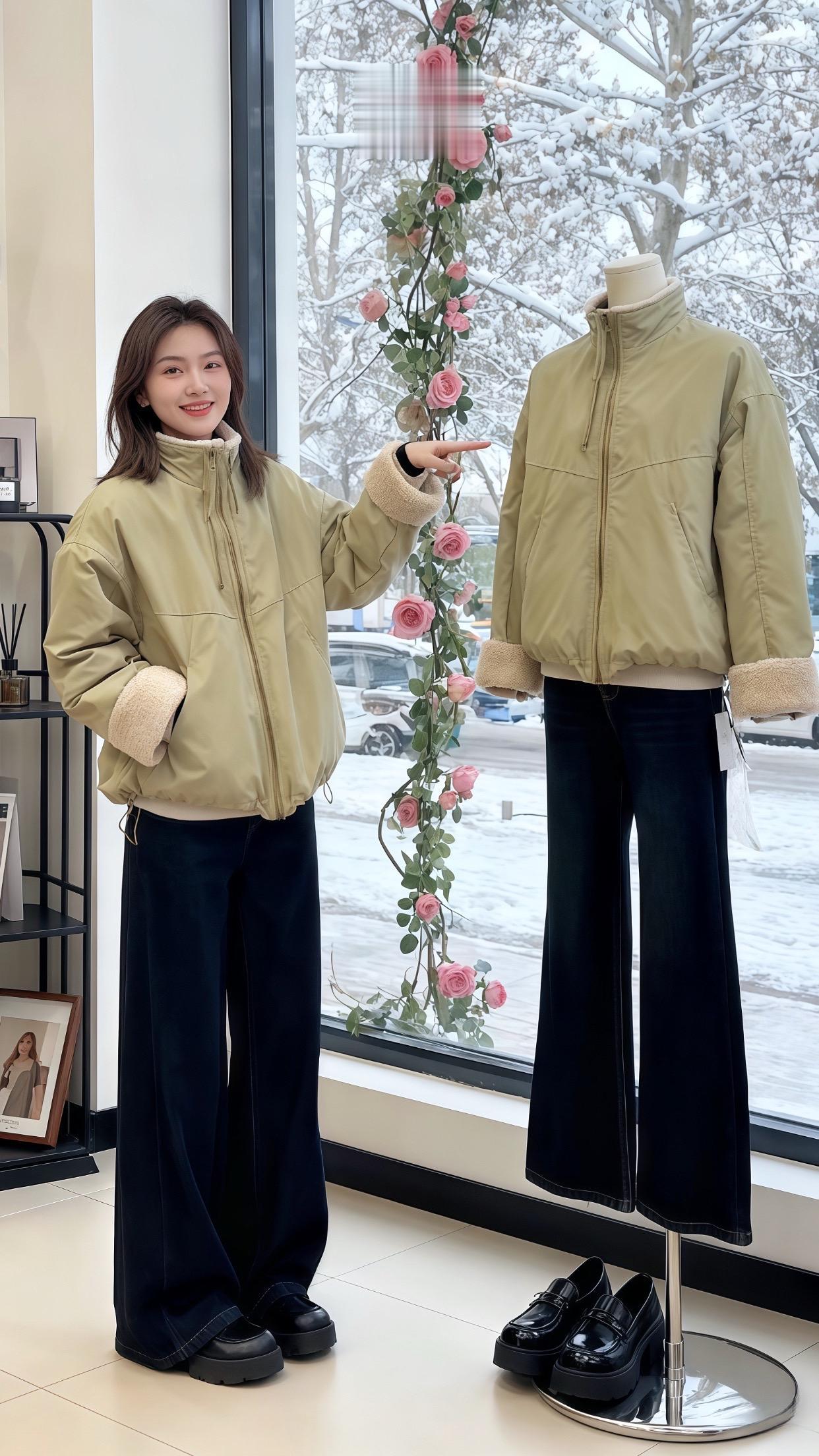 姐妹们谁懂啊!这件米色皮草领短外套简直是冬日穿搭作弊器—软乎乎的皮草领...