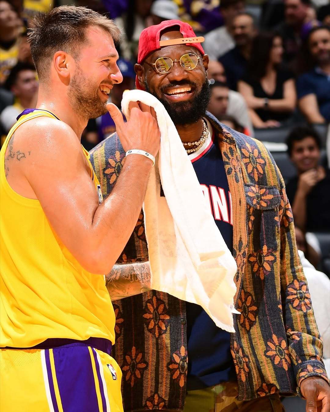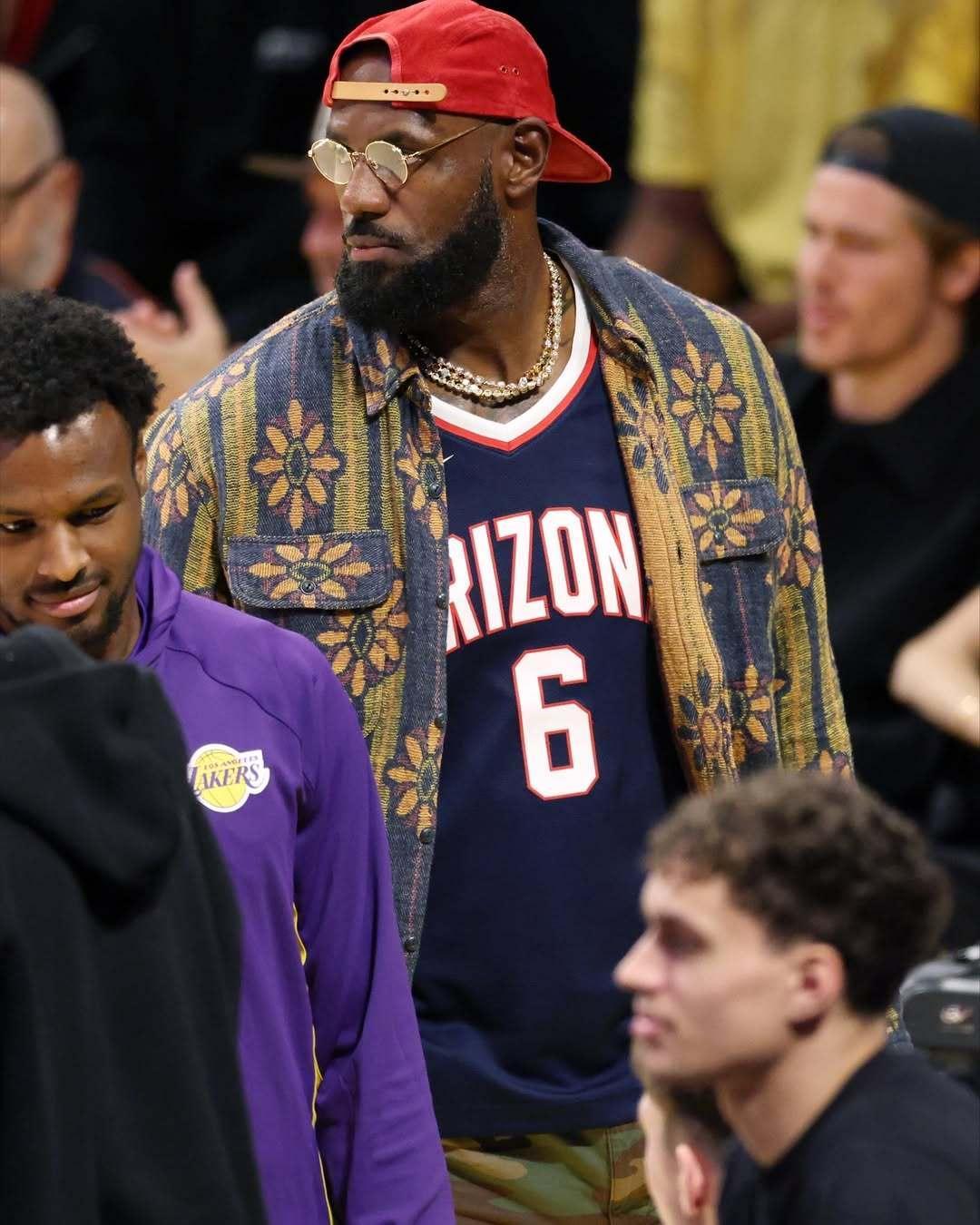 老詹昨日观赛图。詹姆斯湖人国度
