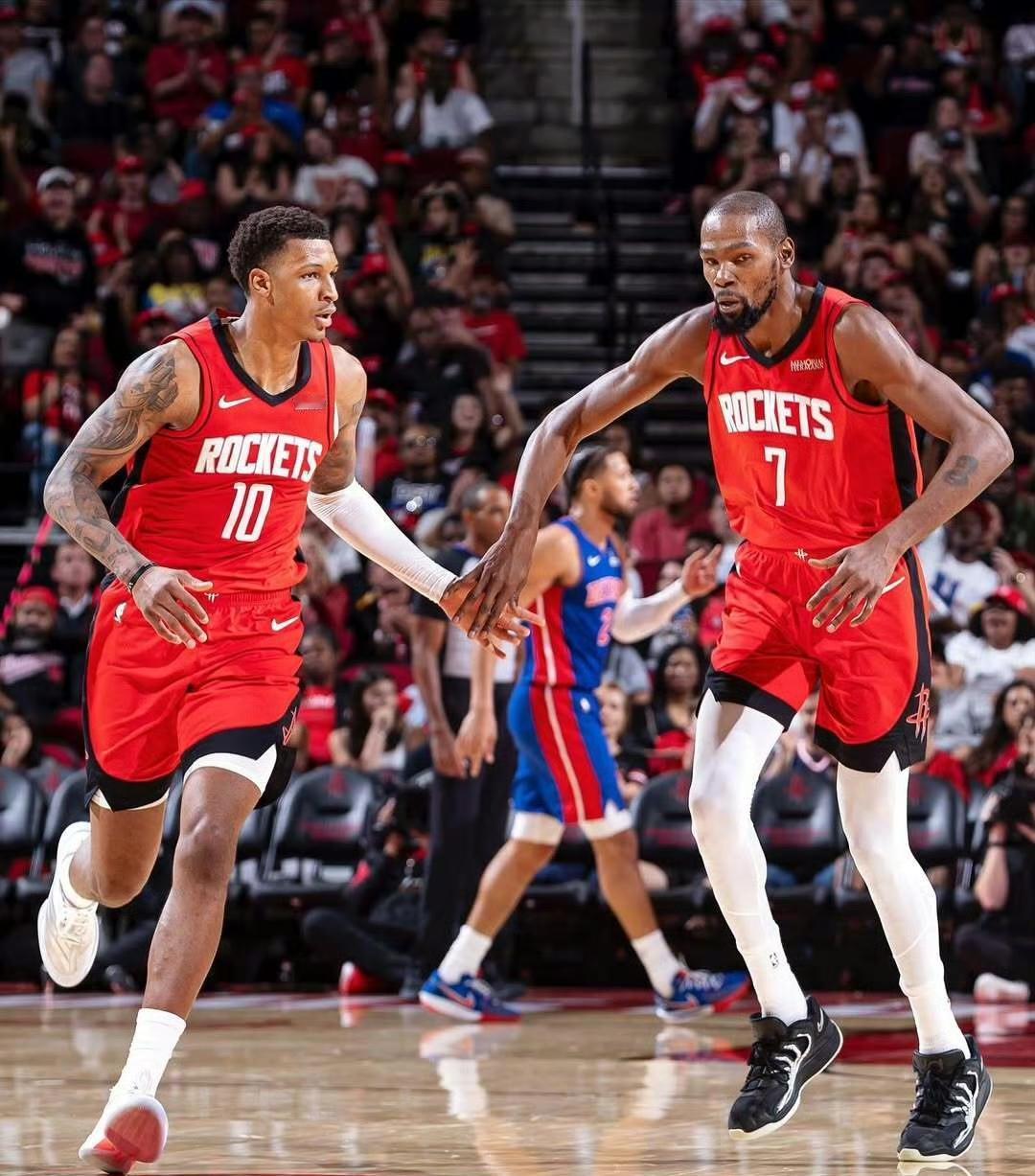 火箭的首发五大阵容短板太明显了,防守只能守篮下,防不了外线和快攻,活塞打得好的进攻基本都是快攻和三分球。 而在防守端活塞也是扎堆篮下,火箭队阿门、亚当斯都没有投射威胁,申京的三分也不够稳定,首发阵容只有杜兰特和小贾有投射威胁,所以活塞放空外线,死守内线是没有问题,虽然杜兰特三分全中,但是申京突破基本都被冒,阿门也突不进去,火箭进攻哑火,防守全无!