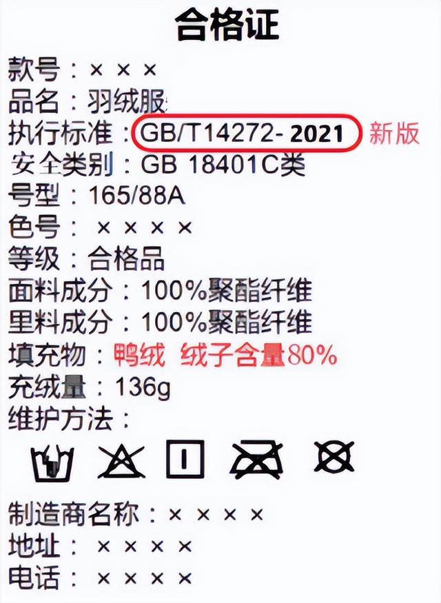 选择标注GB/T14272—2021《羽绒服装》(新国标)的产品,该标准于2022年4月1日实施,要求绒子含量不低于50%,并明确区分鸭绒与鹅绒。