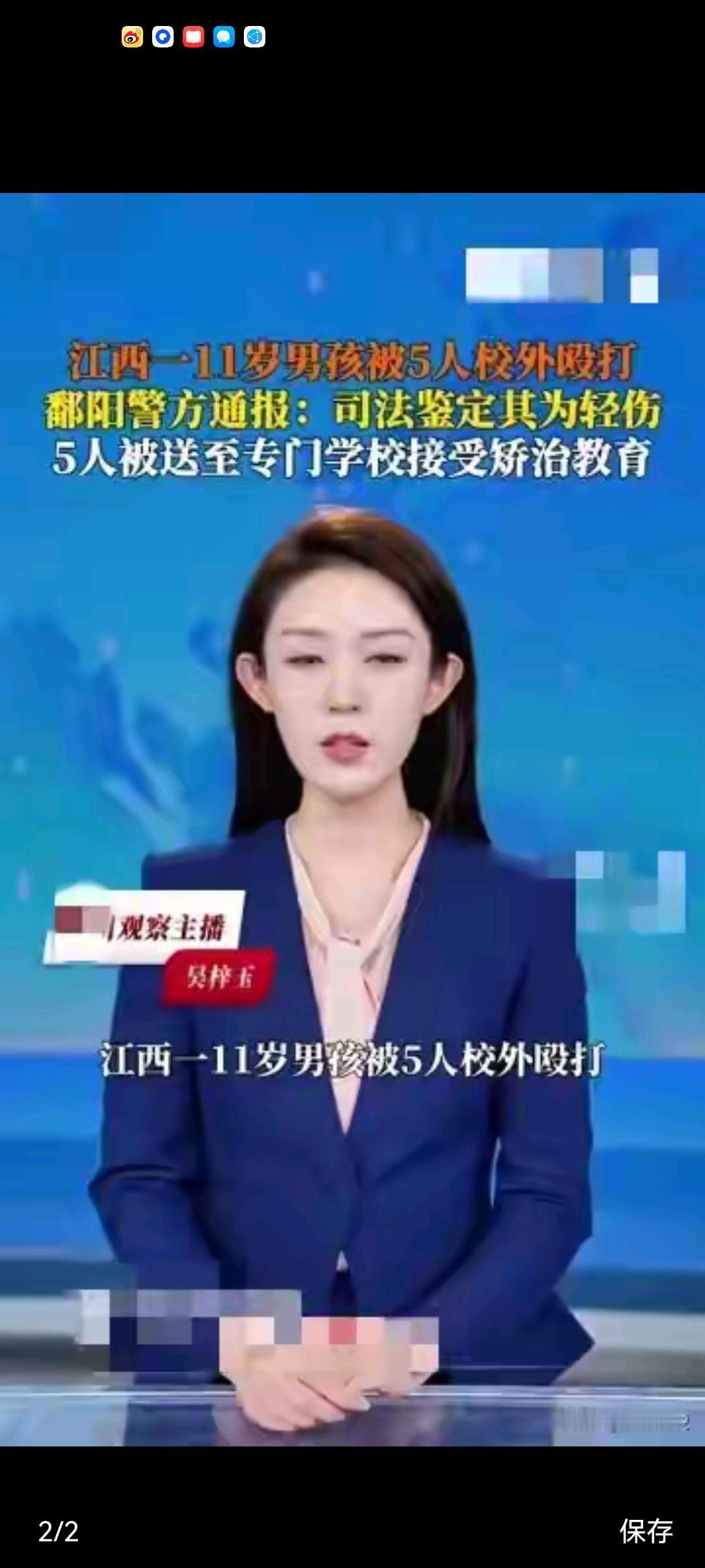 11岁男孩在校外被5人围殴致轻伤!江西鄱阳这起通报,看完心里堵得慌,孩子身上的伤能好,心里的阴影要多久才能散? 事情发生在10月14号晚上10点多,双港镇的小王某豪,因为一点小事和同学王某先闹了矛盾。他没想着和解,反而喊来程某文等4个人,一起把王某先给打了。 医院鉴定是轻伤,好在现在孩子还在康复,伤情稳住了,恢复得也不错。教育和公安的人没闲着,一边帮孩子治伤,一边给他们全家做心理疏导,尽量帮着减轻伤害。 处理结果很快出来了:14岁的程某文因为年龄够了,被治安处罚。另外4个打人的,连程某文一起,总共5个,都送去专门学校接受矫治教育。 这处理挺实在,既没因为是未成年人就放任不管,也没一罚了之,说到底还是想给这些孩子改过的机会,毕竟教育挽救比单纯惩罚更重要。 可这事不是处理完就完了,怎么不让类似的事再发生,才是最该琢磨的。 学校得把功夫做在平时,多开点法制课、品德课,别光讲大道理,就说这些真实的案例,让孩子知道动手打人不仅害别人,自己也得付出代价。 还有,同学之间的小矛盾别等闹大了才管,平时多留意,发现苗头就及时化解,把校园欺凌的预防机制建得再严实点。 家长更不能缺位,自己先做好榜样,别动不动就发脾气、用暴力解决问题。多关心孩子的日常,看看他和同学相处得怎么样,心里有没有不痛快。 要是孩子遇到矛盾,教他好好沟通,别一时冲动就找人“撑腰”,让他明白,打赢了进看守所,打输了进医院,怎么算都是亏。 社会也得搭把手,多传播点正能量,那些暴力、欺凌的视频别到处传,相关部门把网络、文化市场管得严一点,别让那些坏东西影响了孩子。 说到底,孩子的成长路上,学校、家庭、社会缺一不可,得攥成一股劲,才能给他们撑起一片安全的天。 大家觉得,除了这些,预防未成年人之间的暴力冲突,还有哪些更管用的办法?评论区一起聊聊,集思广益,给孩子们多添层保护!