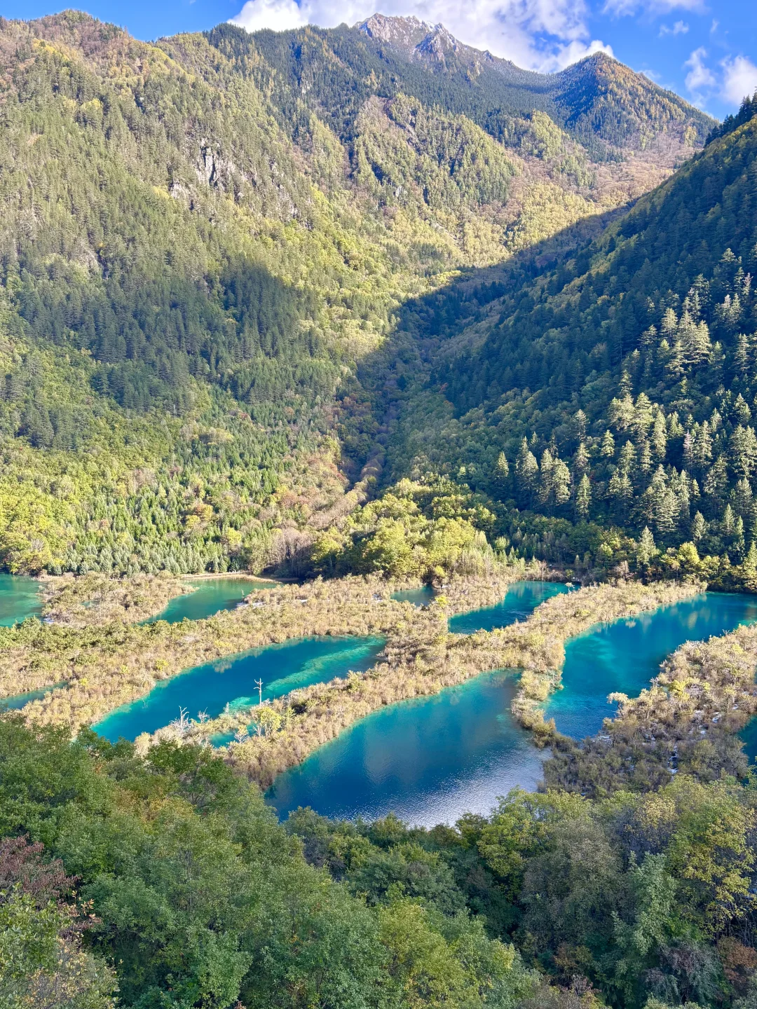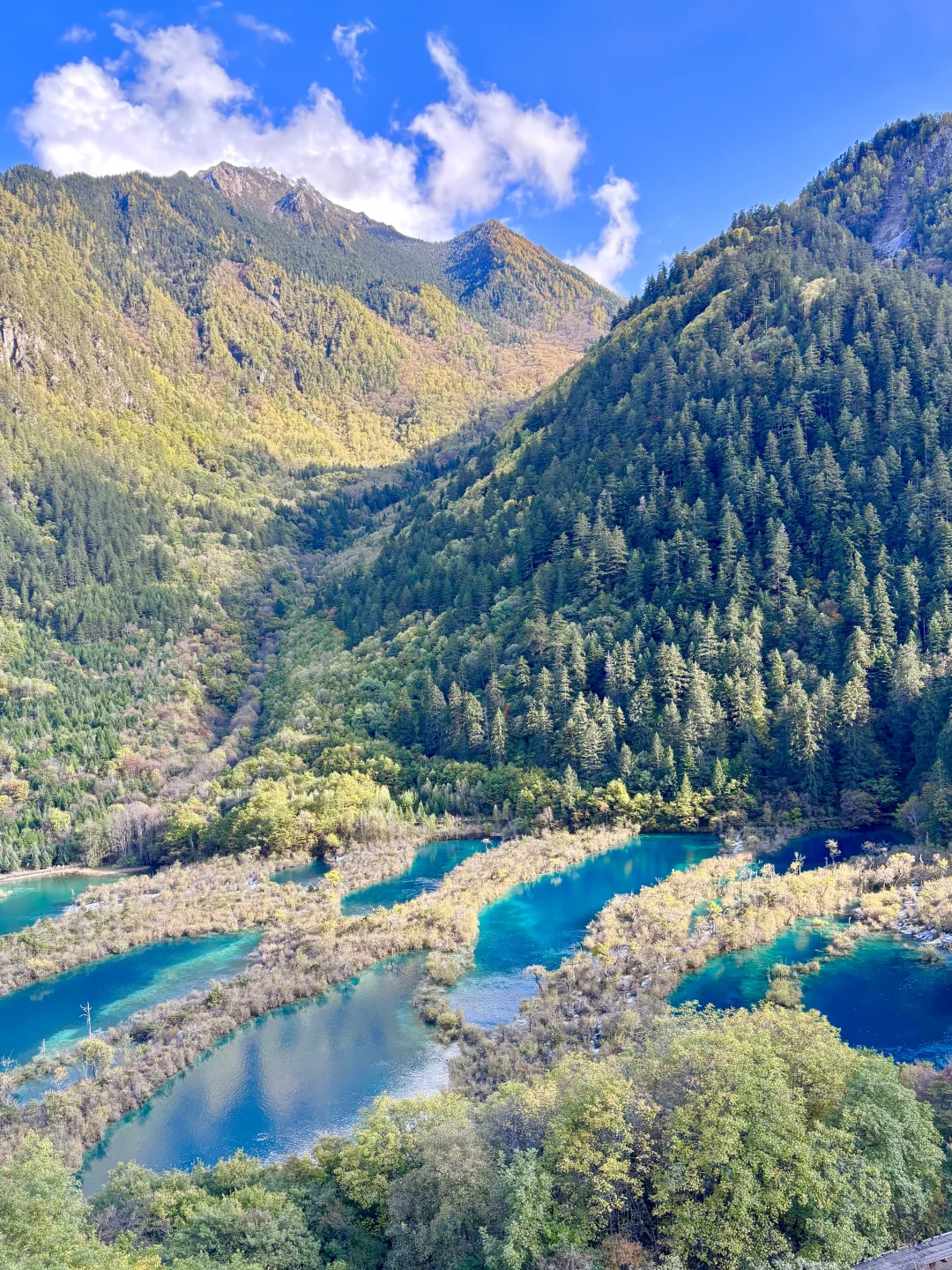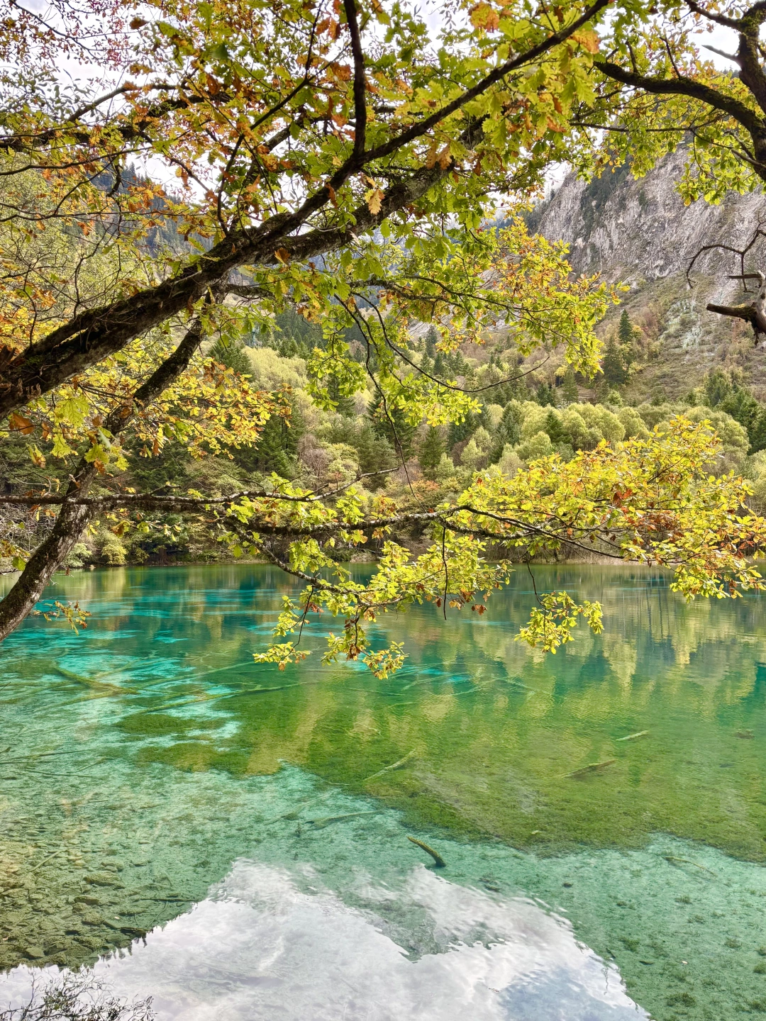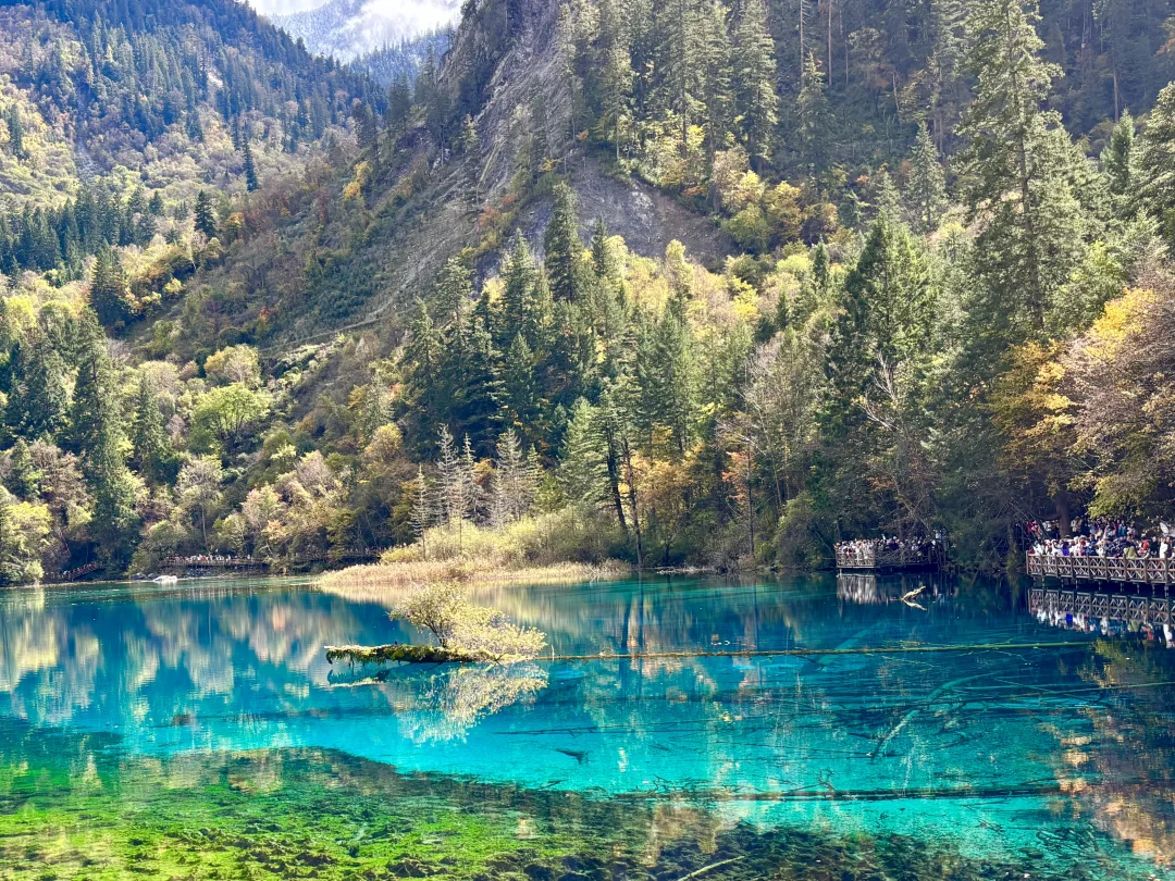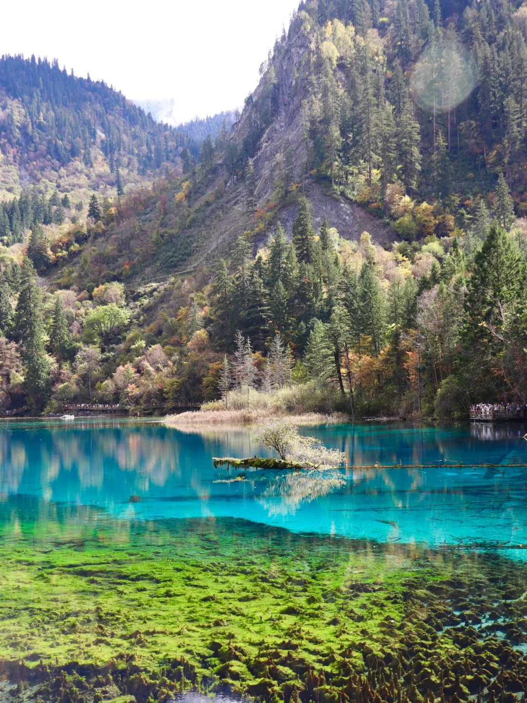 我们去了右线和中线,因为右线红叶较多,左线四季风景差不多。人太多,所以果断放弃了左线~ 有光(秋季)的情况下,右线最好的光线都在上午,大致如下⬇️: 原始森林-天鹅海9-10点半; 镜海早上9点,箭竹海-熊猫海10-12点, 五花海12-14点(绝美,图1),在这里吃泡面烤肠补充体力 下午开始中线: 瀑布方向可以看到火花海,芦苇海,16点之前有光,比较漂亮。 犀牛海,树正群海,老虎海不太要求时间,天晴的话上午下午都可以,时间紧犀牛海可以作为长海平替,五彩池也不挑时间不过无平替,蓝的很精致。