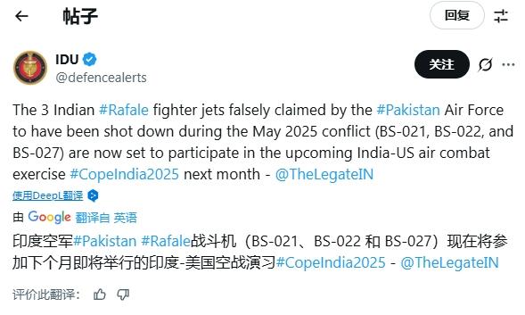 被巴基斯坦击落的“阵风”战机,将参与印度军演? 印度为了证明自家“阵风”没被巴基斯坦击落,什么招都使出来了。 25日印媒《欧亚时报》发文称,被巴基斯坦宣布击落的编号BS-021、BS-022和BS-027“阵风”战机将参加11月举行的“印度合作-2025”军演。 不过,《欧亚时报》这一说法来自“未经证实的消息”,而这一消息的源头,则是社交媒体上一些印度网友的传言——所以在评论区中,有巴基斯坦网友直接开嘲,表示印度难不成是把一架“阵风”刷上BS-021、再拖出来展示吗? 从心理学的角度来说,印度越是这么试图证明“阵风”没有被击落,越会暴露出自己的心虚,毕竟掩饰的越多,也就越容易出现破绽。 另外,比较滑稽的是,《欧亚时报》还自我感觉良好地表示,今年的“四方安全对话”军演将在关岛举行,“看看中国将如何应对在自家后院举行的演习,将会很有趣”。 没错,印度媒体一句话就把关岛划成了“中国的后院”——那么问题就来了:美国人知道印度这么“大方”吗?