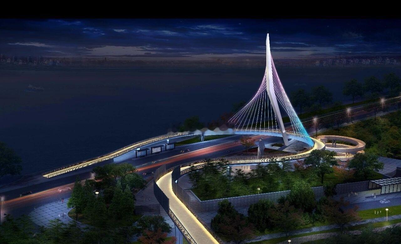 福州马尾东江滨天马山生态公园内环建设人行桥开始施工 天桥依次跨越江滨东大道、旺
