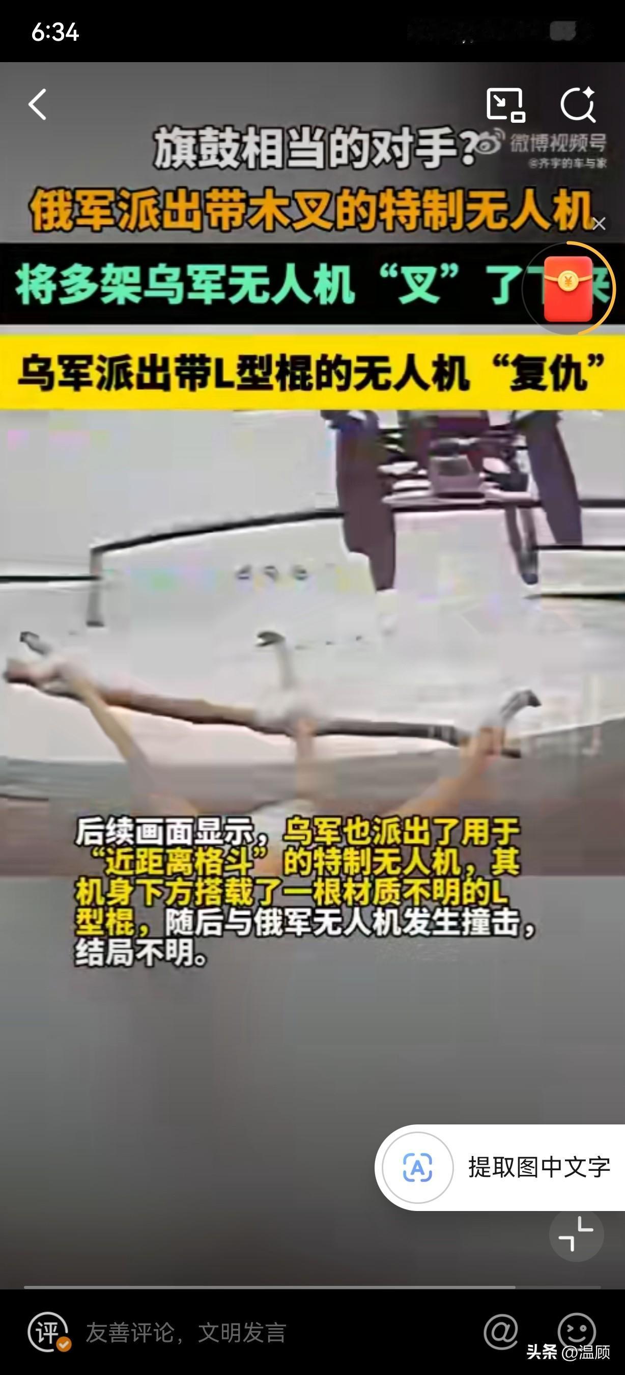 俄军无人机绑棍子捅落乌无人机。近日,俄罗斯空降军第98旅发布视频显示,绑着棍子的俄军无人机靠近乌军无人机,直接捅向其机翼,棍子顶端的小型炸弹爆炸,乌军无人机立刻从高空坠落。 100年前飞机刚开始用于军事的时候,最先就是两个飞行员,拿木棍互相捅,然后丢石头,然后用手枪,再然后安装机枪,现在又回到了原始阶段。 当对手沉浸在电子干扰、信号屏蔽的高科技对抗中时,一根简单的物理棍棒反而成了无法防御的“奇招”。真正的降维打击,未必来自更高的科技,而是来自更底层的思维。