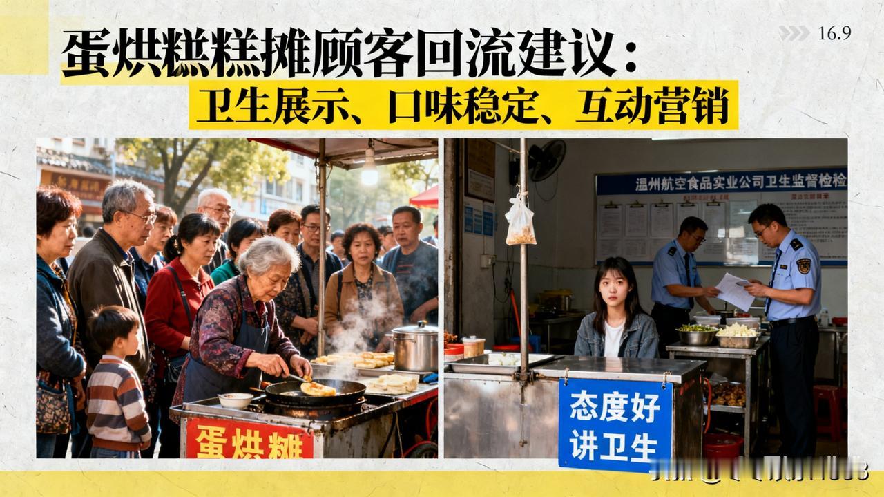 曾经生意火爆,一天能卖七八百个的蛋烘糕摊,如今却 “塌房” 严重,几乎没什么顾客了。原来是卖蛋烘糕的老婆婆出了问题,具体原因虽未明说,但肯定是某些行为让顾客们失望了。现在老婆婆白天睡觉,换成女儿来接班。女儿表示自己态度好,可即便如此,受老婆婆 “塌房” 影响,现在一天也就卖两三百个。不过即便销量下降,利润依旧可观。 而且现在卖蛋烘糕的换成了年轻又讲卫生的人。讲卫生在食品行业可是很重要的,就像很多地方都强调卫生,像温州航空食品实业公司会对供机食品进行卫生监督检验。那么问题来了,大家面对换人卖的蛋烘糕,还会去吃吗?