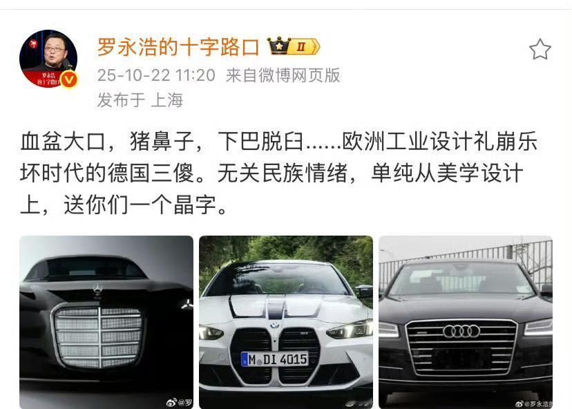 罗永浩在微博对BBA贴脸开大,这是发生什么事了,有网友知道吗?[捂脸]