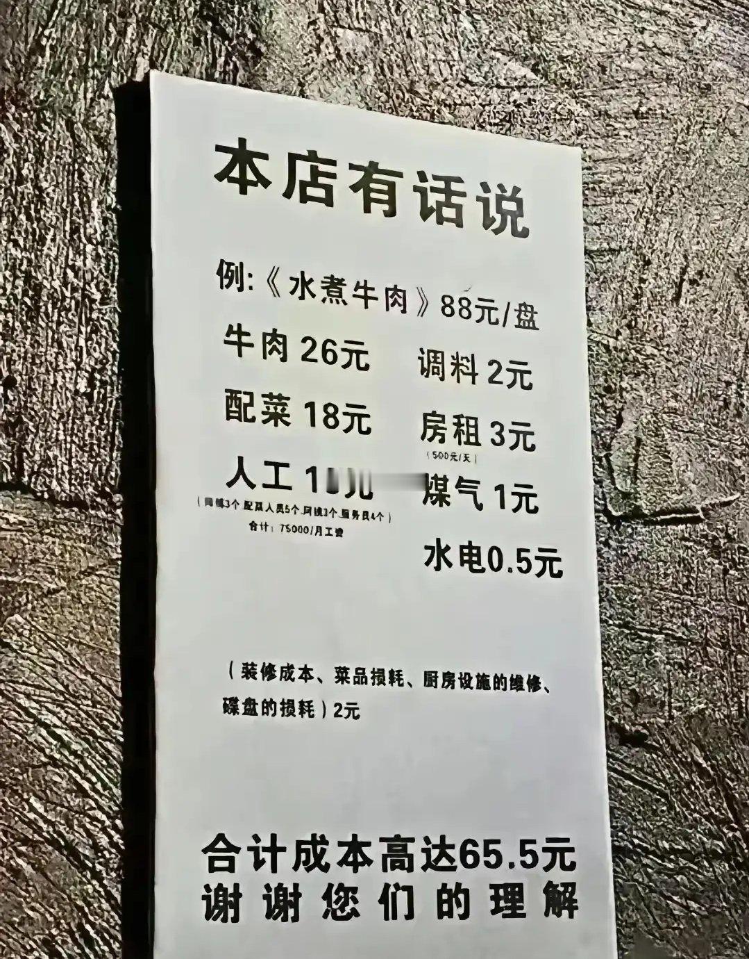 这样明码标价[赞]我之前分析过餐饮营收构成食材1/3-1/4运营成本1/2利润