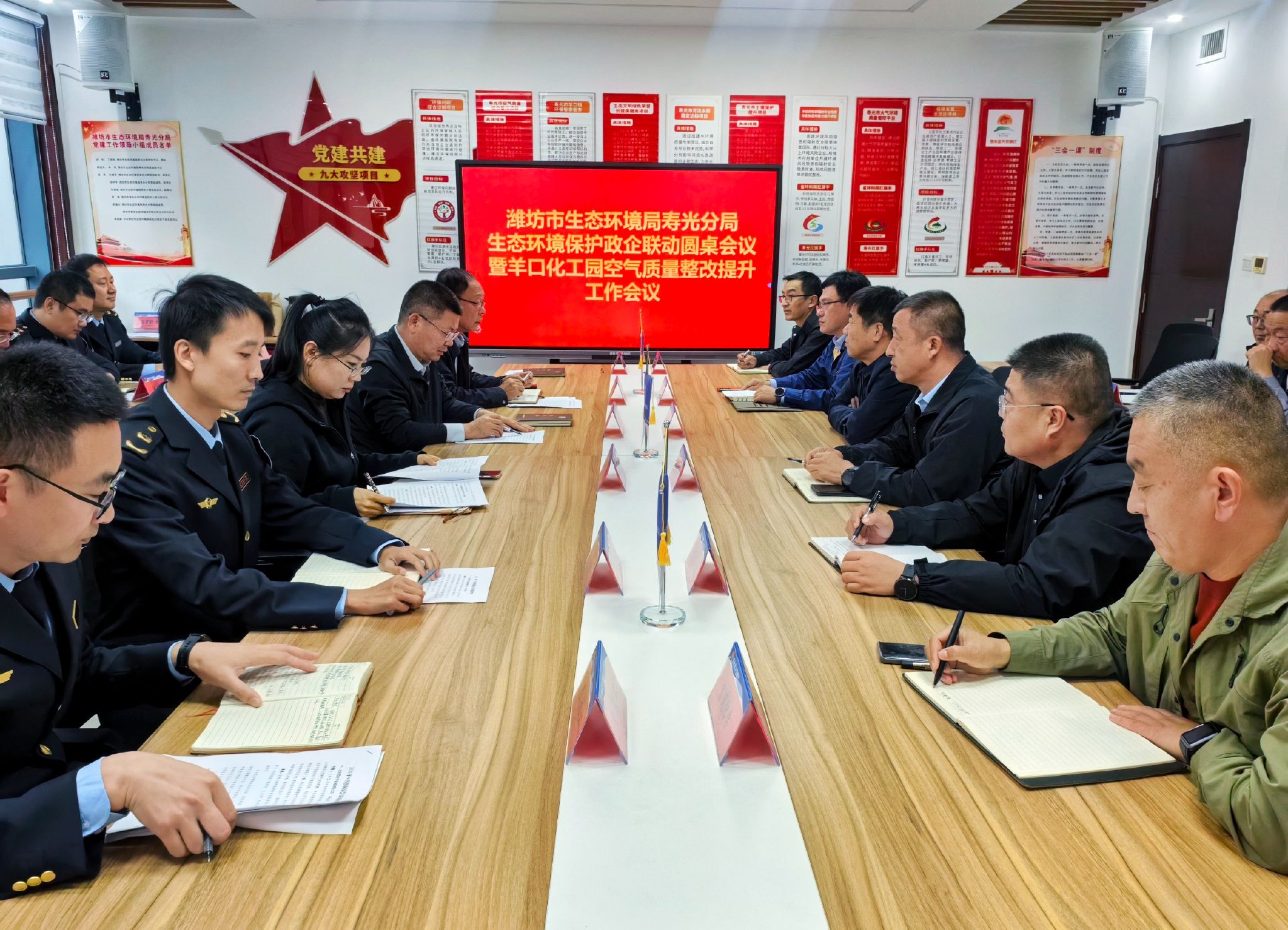 山东省潍坊市生态环境局寿光分局日前组织召开“政企协同·共护蓝天碧水”企业圆桌会议,邀请羊口镇政府、羊口化工园区11家重点排污企业负责人参加,围绕“污染防治攻坚”“政策服务优化”“绿色技术创新”三大方面展开深入交流,旨在搭建政企沟通桥梁,凝聚生态环境保护合力。
