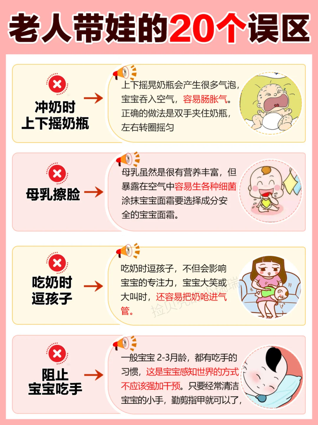 老人帮忙带孩子,新手爸妈也可以相对轻松些,但在带娃方面,新手爸妈一定要提前知道那些行为是对的,哪些是错的,不要一味听老人的,毕竟老人带娃经验也过去二三十年了