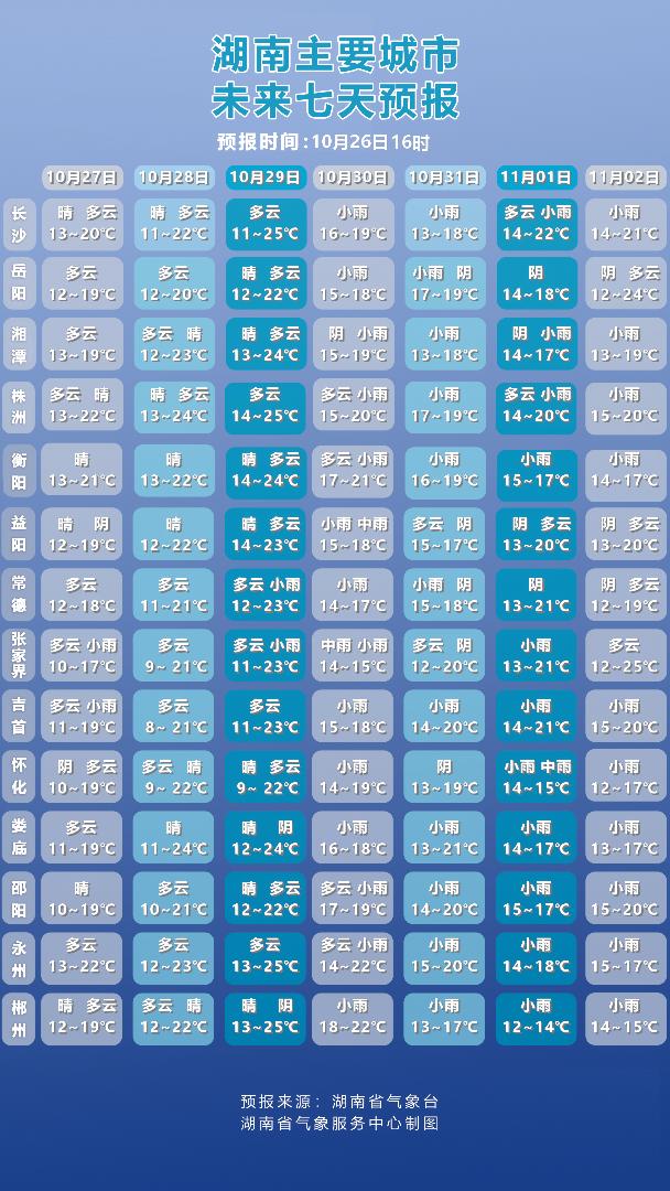 湖南最新天气预报