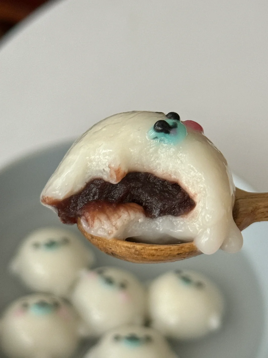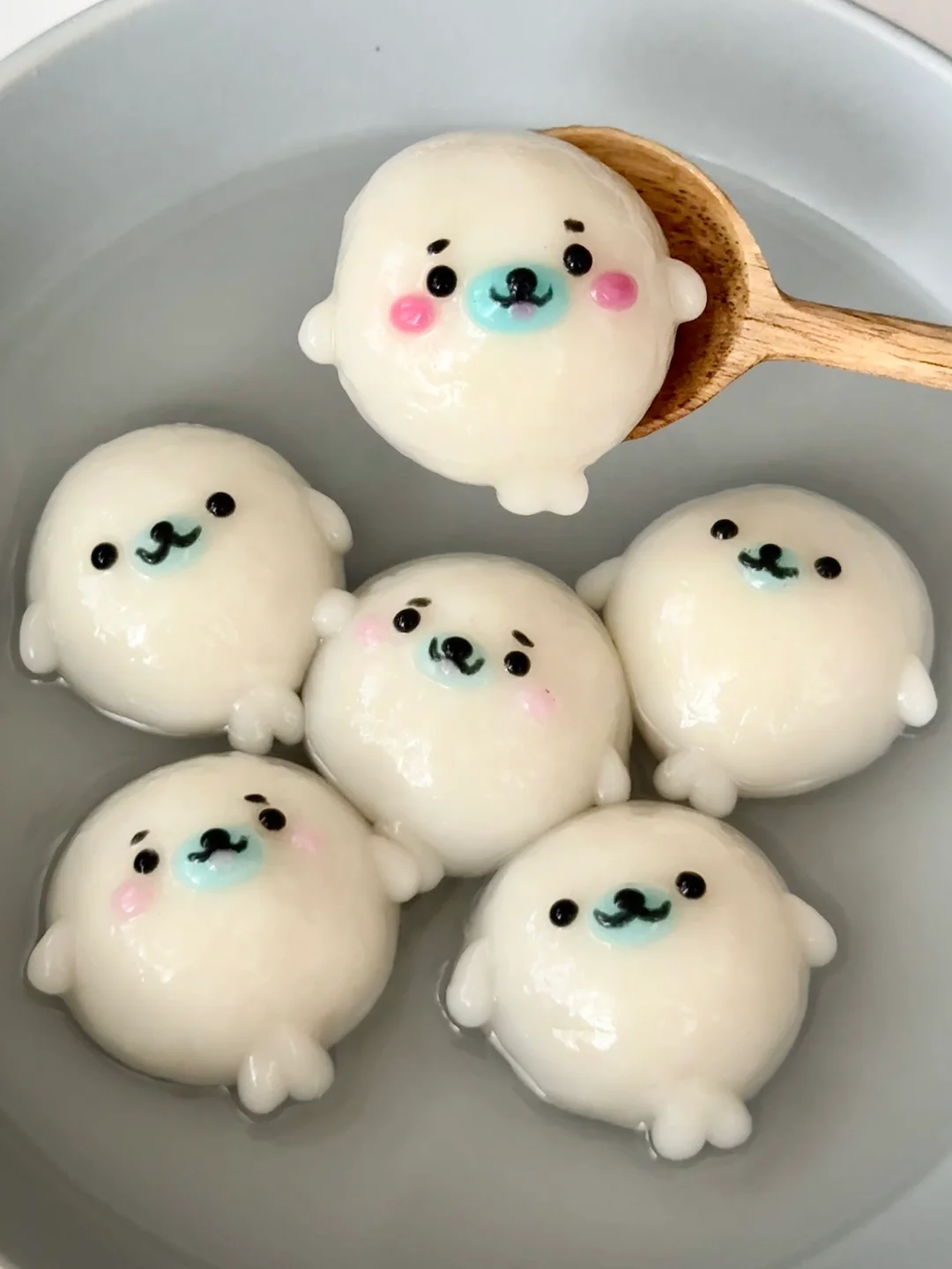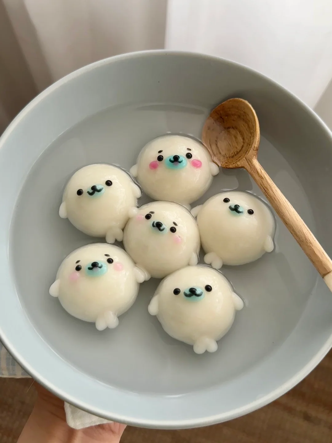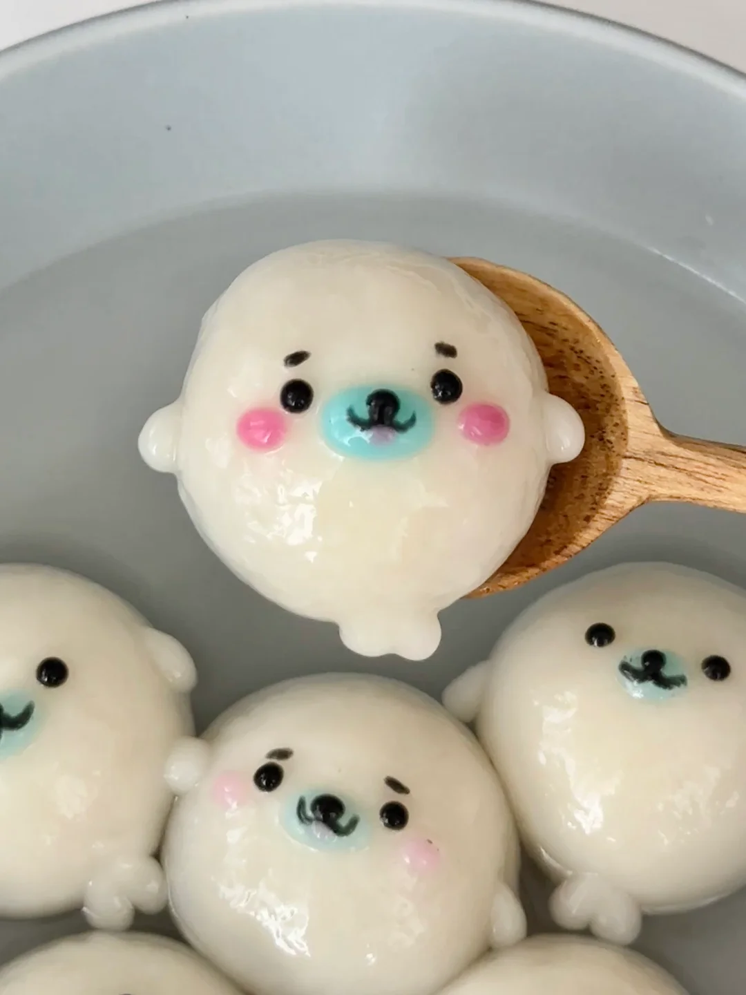 圆滚滚胖嘟嘟的豆芝麻海豹变成了一个个糯叽叽的汤圆 祝大家儿童节快乐哦🎉 - 材料: 糯米粉100g 、白糖5g、开水70g-75g、豆沙馅15g/个 步骤: 1️⃣糯米粉、白糖混合均匀,分次加入开水,用筷子搅拌成絮状,戴上手套揉成面团,包上保鲜膜醒发20分钟 2️⃣豆沙分成15g每个,放入冰箱冷冻一会(新手可包10g/个) 3️⃣醒发好的面团,分成25g一个的小剂子,压扁后包入豆沙馅料,再加入海豹的细节 4️⃣锅中的水煮开后,缓慢放入汤圆,开小火煮,这样煮出来的汤圆比较完整