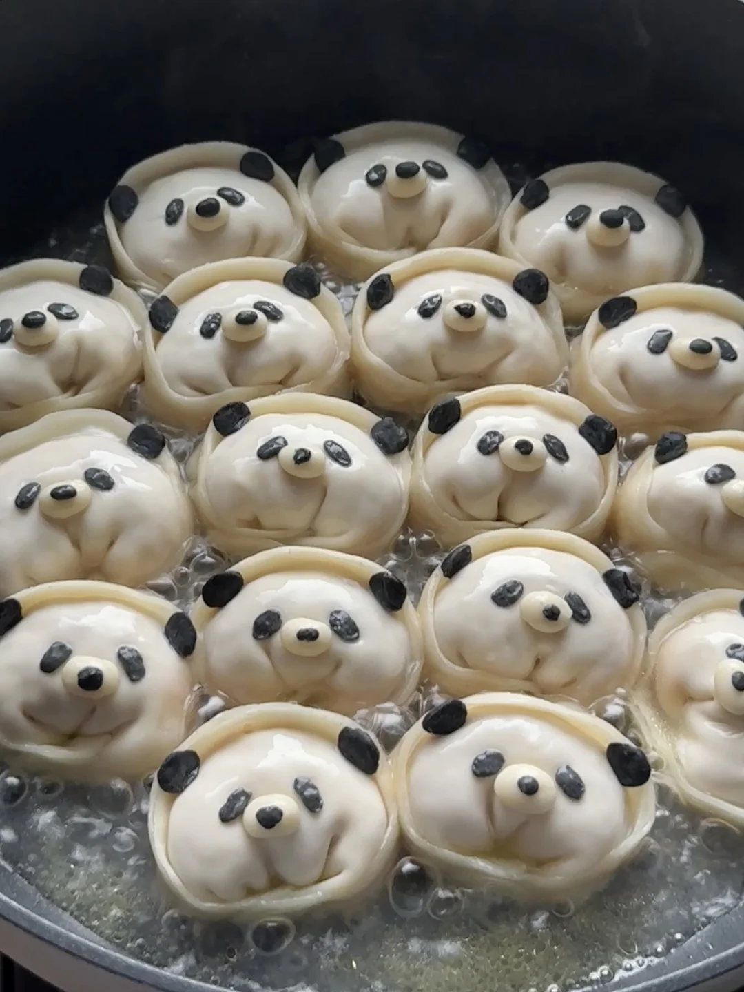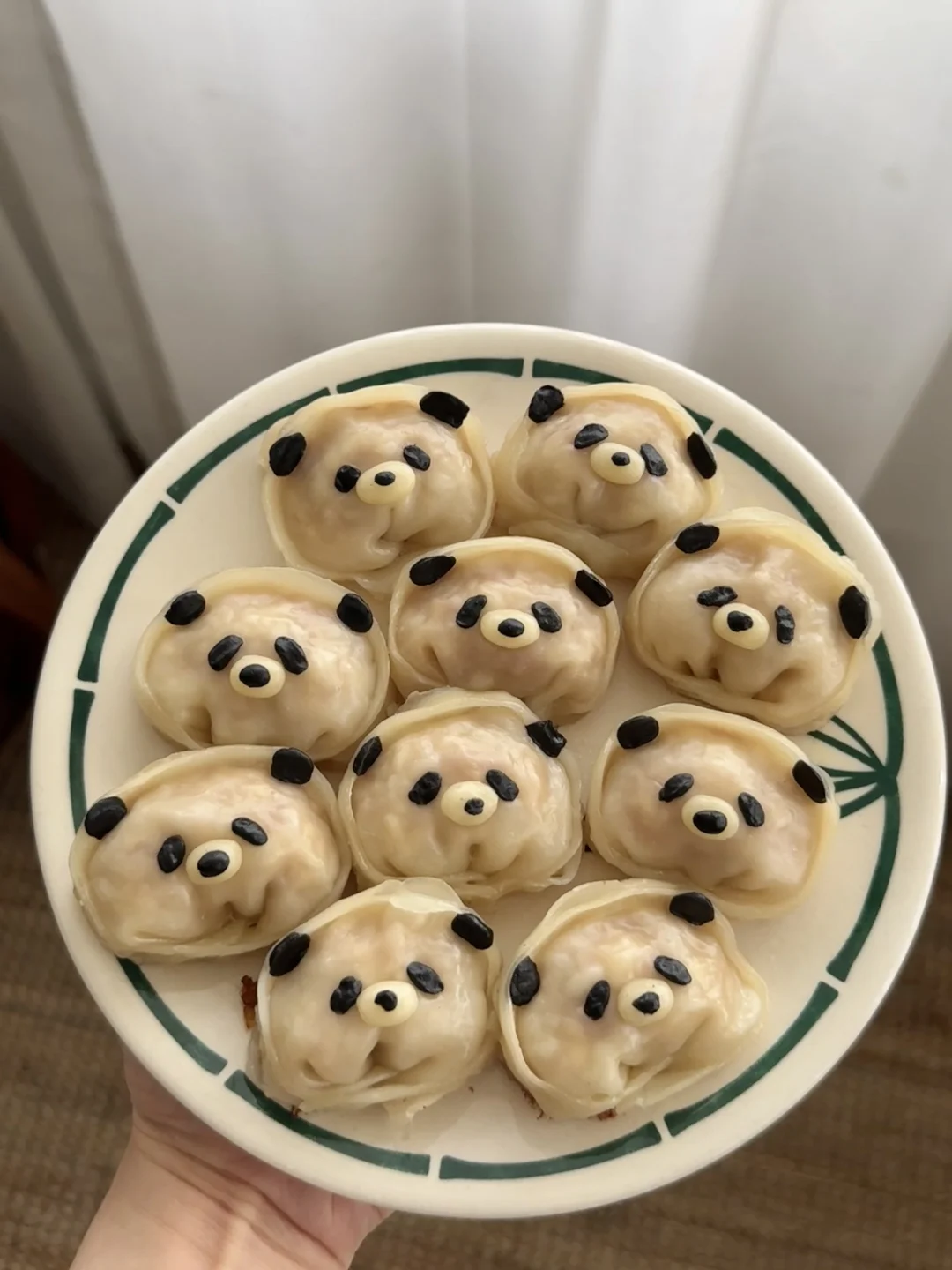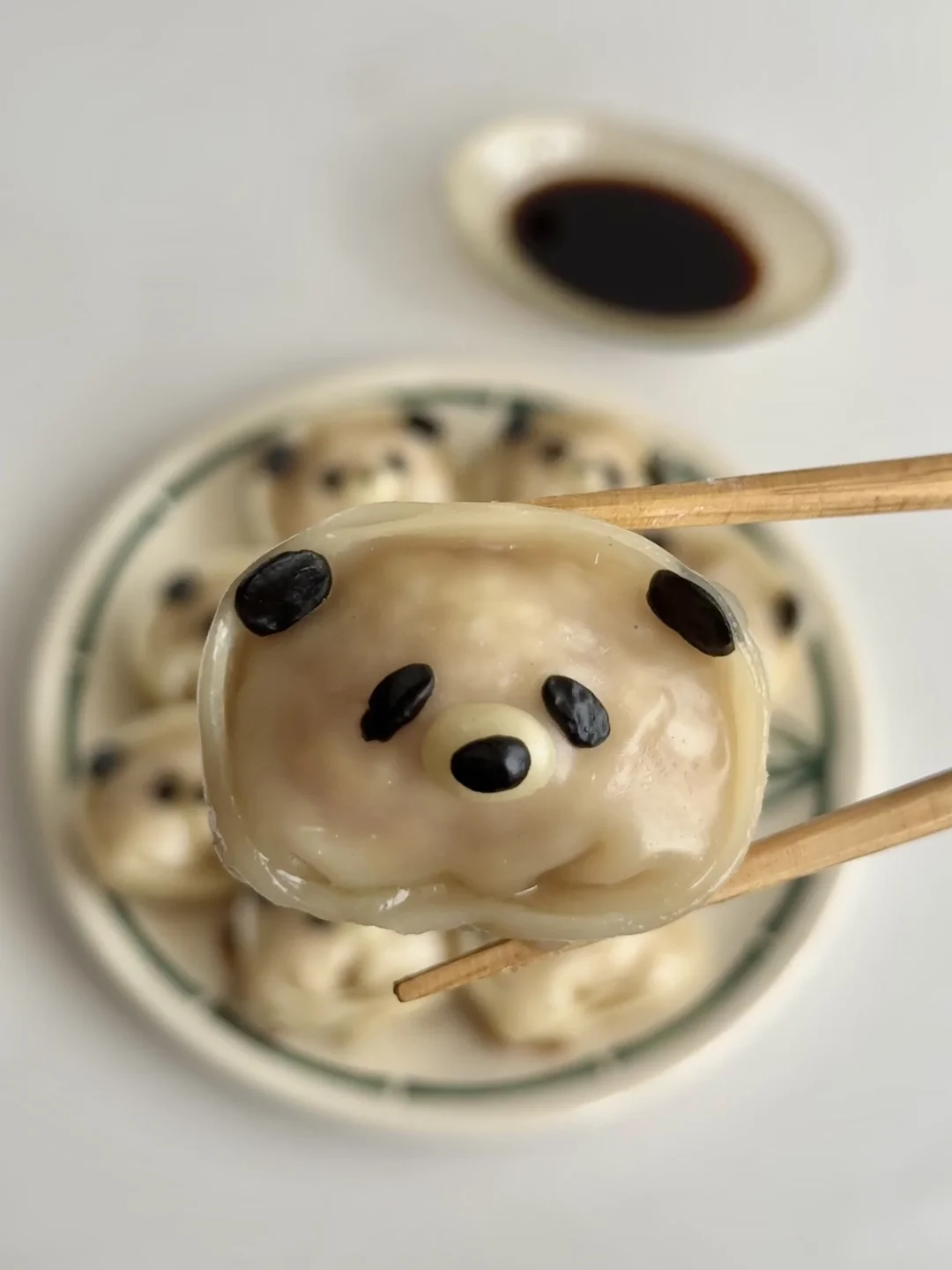 这次把可爱的熊猫茅茅做成鲜嫩脆甜的饺子,里面包着多多的竹笋,我猜茅茅那圆滚滚的肚子里也都满满竹笋~