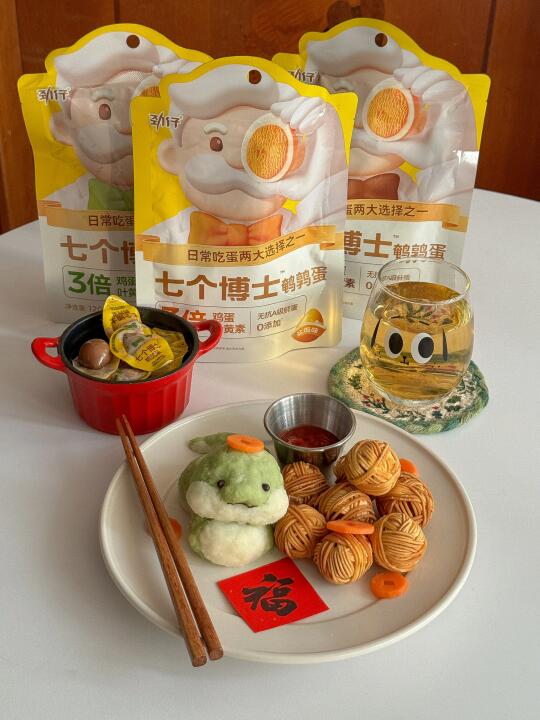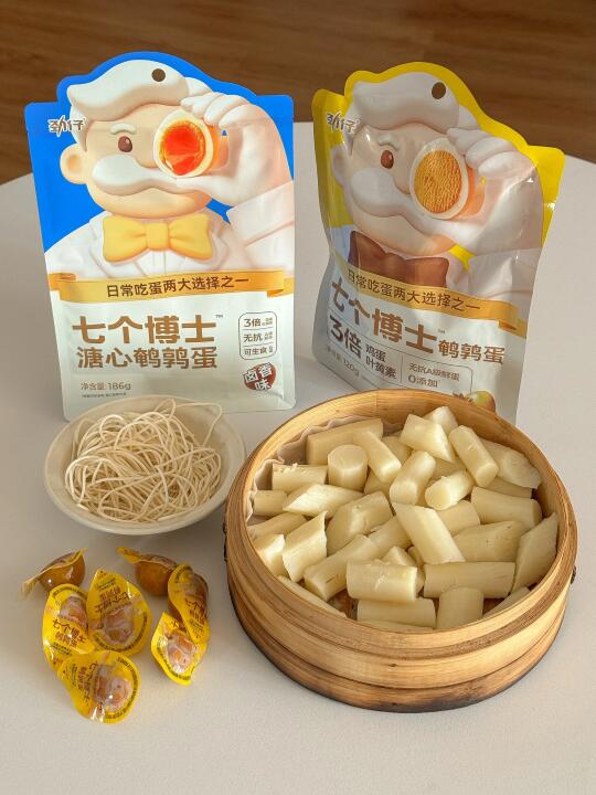 鹌鹑蛋我偷懒用了现成的七个博士爆汁鹌鹑蛋,不剥壳的快乐谁懂呀!低温慢卤过的鹌鹑蛋吃起来是q弹细腻又入味~别看它小小一颗,但它的叶黄素是鸡蛋的3倍,蛋白是牛奶的4倍,营养价值杆杆滴👍,最关键的是配料表很干净,蛋蛋有无抗认证,吃的干净才能放心!