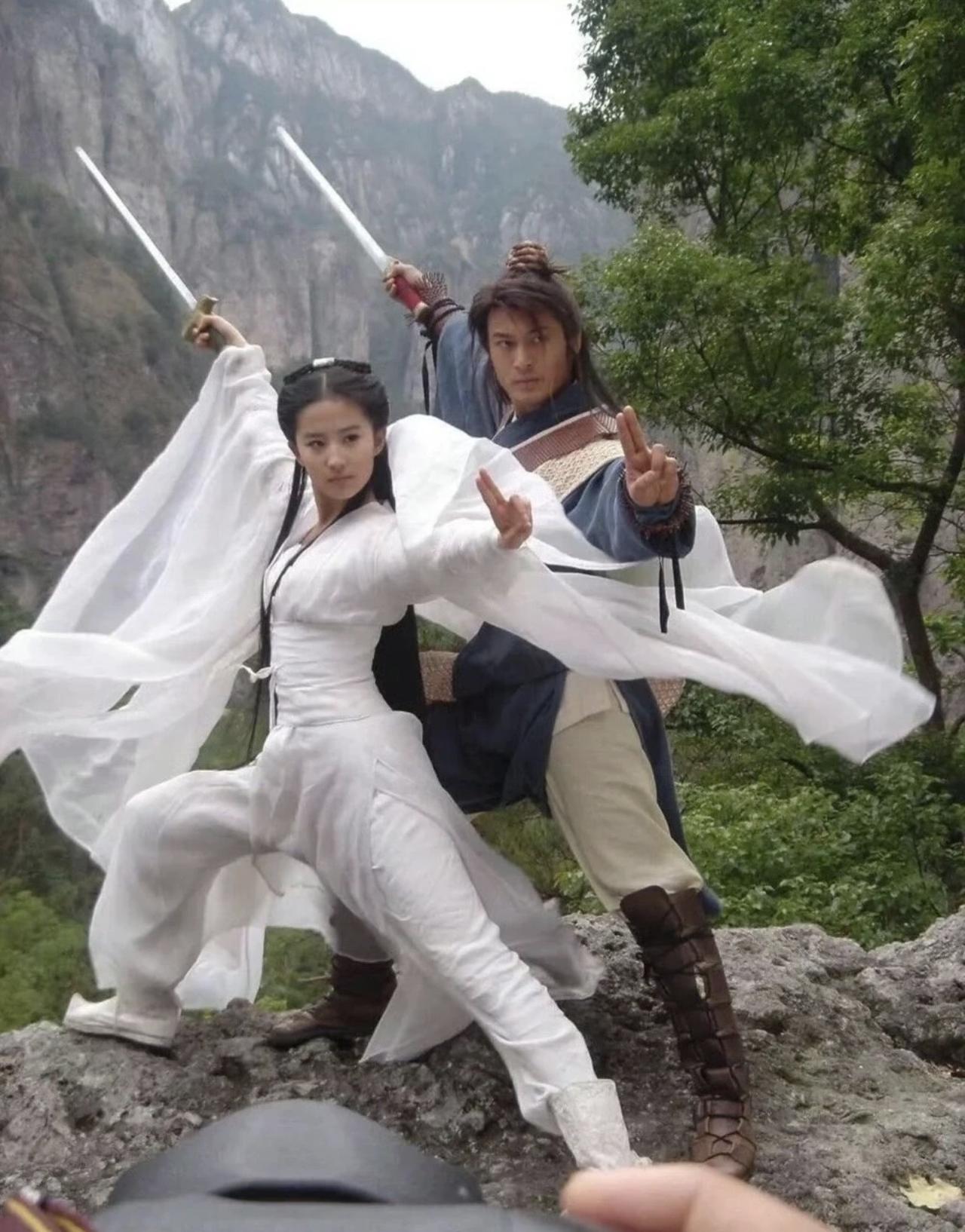 黄晓明与刘亦菲古早剧照,两人拍武侠剧《神雕侠侣》的画面。 当年,黄晓明饰演的“杨过”,刘亦菲饰演的“小龙女”,两人是颜值较高的一个版本。 拍这部剧的时候,是2004年10月到2005年4月,黄晓明二十七八岁,刘亦菲十七八岁。 2006年3月份上映的,已经过去19年了,时间过得好快啊。黄晓明 刘亦菲 剧照