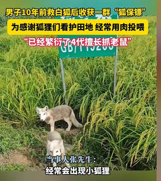 “万物皆有灵!”近日,黑龙江,一男子在10年前救了一只白狐,没想到之后白狐就不肯走了,甚至还生下了4代小狐狸,世代帮他看守稻田,地里再也没有出现老鼠,这些狐狸俨然成为了他的“保镖”!网友:这狐狸上辈子和他一定有缘啊。   “你看,它们认得我。”张先生话音刚落,几只狐狸便从稻田深处轻盈地跑来,眼睛里没有丝毫野性的警惕,倒像是看见父母的孩子。   十年前的那个冬天,张先生在雪地里发现了一只快要没气的白狐,他把它抱回家后,邻居们都笑他傻:“狐狸养不熟的,伤好了肯定跑。”可谁能想到,这只白狐不仅留了下来,还带来了一个家族,整整四代,二十多只狐狸,日夜守护着这片百亩稻田。   小白狐刚来的时候,是张先生每天给它喂食,一个月后,狐狸养好了,却没有离开的意思。它开始在张先生家附近的田埂上打洞安家,白天偶尔不见踪影,傍晚总会准时出现在张先生门前。   “它是不是在等什么?”张先生的妻子最初有些害怕。直到有一天,她看见那只白狐嘴里叼着一只肥大的田鼠,骄傲地放在门前,然后静静地望着他们。那一刻他们明白了,它是在回礼。   不知不觉间,张先生发现田里的老鼠越来越少了。以往每到稻穗灌浆的时候,田鼠总是很猖獗,他不得不在田边放置各种捕鼠夹,但效果非常有限。可自从白狐定居后,老鼠仿佛一夜之间消失了。   更让人惊喜的是,这些狐狸仿佛分工明确。年长的狐狸会教幼崽如何伏击,它们的食谱也很广:田鼠、蚂蚱、啃食稻根的地下害虫,都是它们的食物。   其实,张先生也担心过,那些新生的狐狸还带着野性,会不会离开。可他没想到,即便狐狸越来越多,他们始终都跟自己很亲。   每当他提着装满肉和鸡蛋的篮子走来,不需要呼唤,狐狸们便会从四面八方聚拢。它们从不争抢,总是安静地等待分配。那只最年长的狐狸,最初被救的那只的后代,总会最后一个进食,像一个沉稳的大家长。   据专业人士所说,这些狐狸很可能是从皮毛养殖场跑出来或被作为“异宠”饲养后遗弃的。由于缺乏野外生存能力,如果没有得到张先生的救助,它们很难在自然环境中存活下来。   作为回报,狐狸们利用天性,帮张先生捕食害虫,这反而比任何农药都有效,没有鼠害,没有虫灾,这片稻田几乎不需要化学防治。而这些狐狸也得到了安全的栖息地和稳定的食物来源,可以说是完美的共生关系。   张先生听不懂这些术语,他只知道,自从狐狸来了之后,他的稻田再也不用担心被老鼠祸害。他也不用再花钱买鼠药,既省了钱,又保护了环境。   十年过去了,最神奇的是,这些狐狸从不去祸害邻家的鸡鸭,仿佛懂得界限在哪里。邻居们也从最初的质疑变成了现在的保护者,大家都自觉地守护着这个特殊的家族。   只能说,万物皆有灵。如果不是十年前那次心软的救援,就不会有今天这幅和谐的画面。这不是什么神话传说中的报恩,而是两个不同物种在漫长相处中建立的信任与依赖。   信源: 新华社——男子10年前救白狐,收获一群“狐保镖”投喂肉蛋表感谢   文│一阳 编辑│史叔