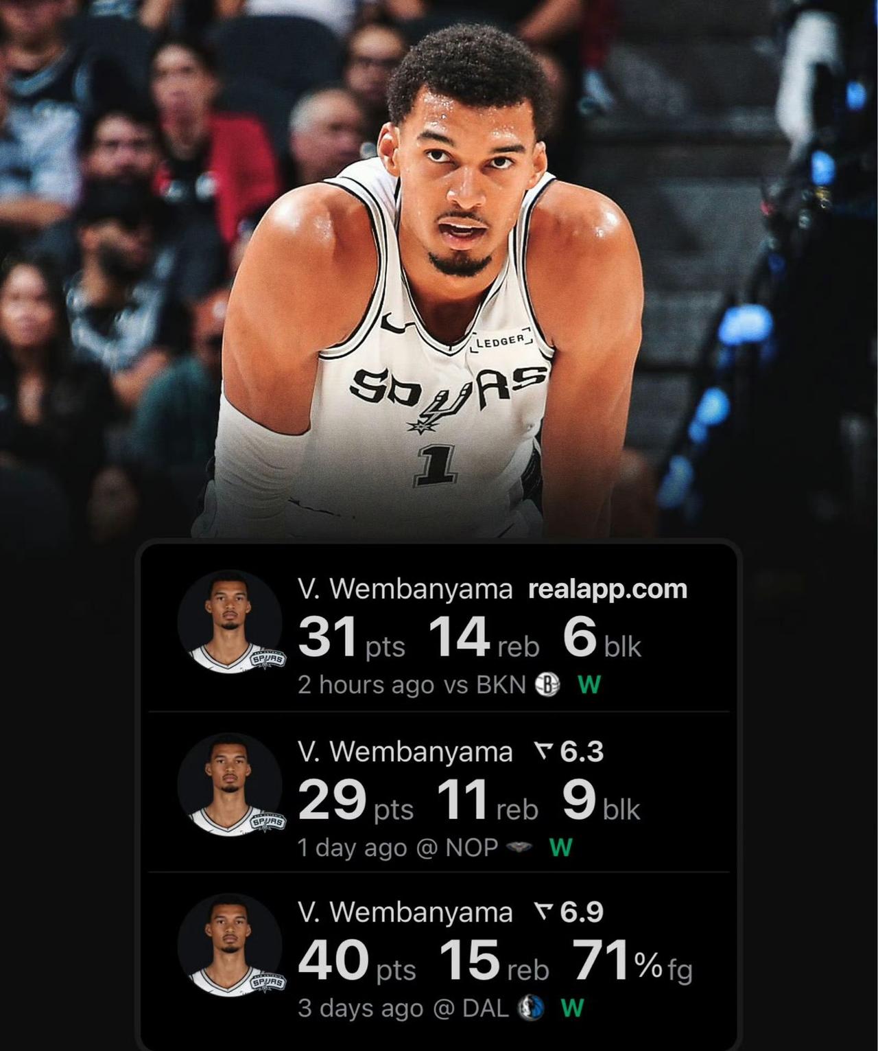休赛期来到中国进修的球员这个赛季都变强了。尤其是学了少林功夫的文班亚马,简直强得离谱。 开季三连胜,场均33.3分13.3篮板6.0盖帽,比赛观感比数据还要炸裂。 去少林寺升级后的文班亚马三场比赛一共得了100分+18个封盖,打破46队史记录。